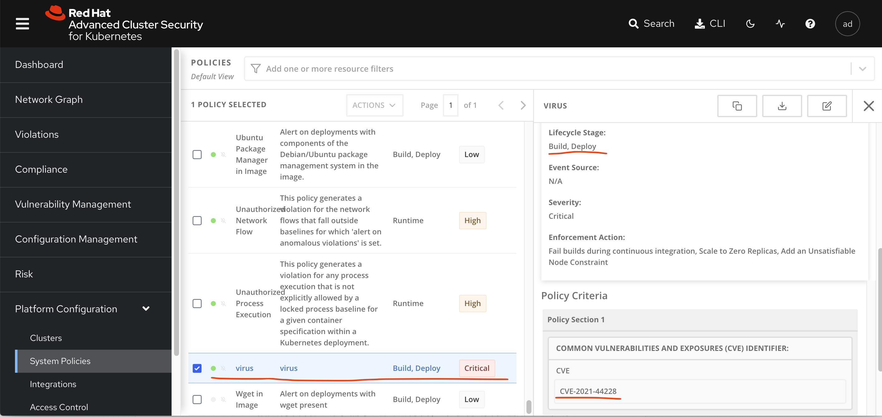 那么我们看看红帽RHACS容器安全平台能不能扫出来。