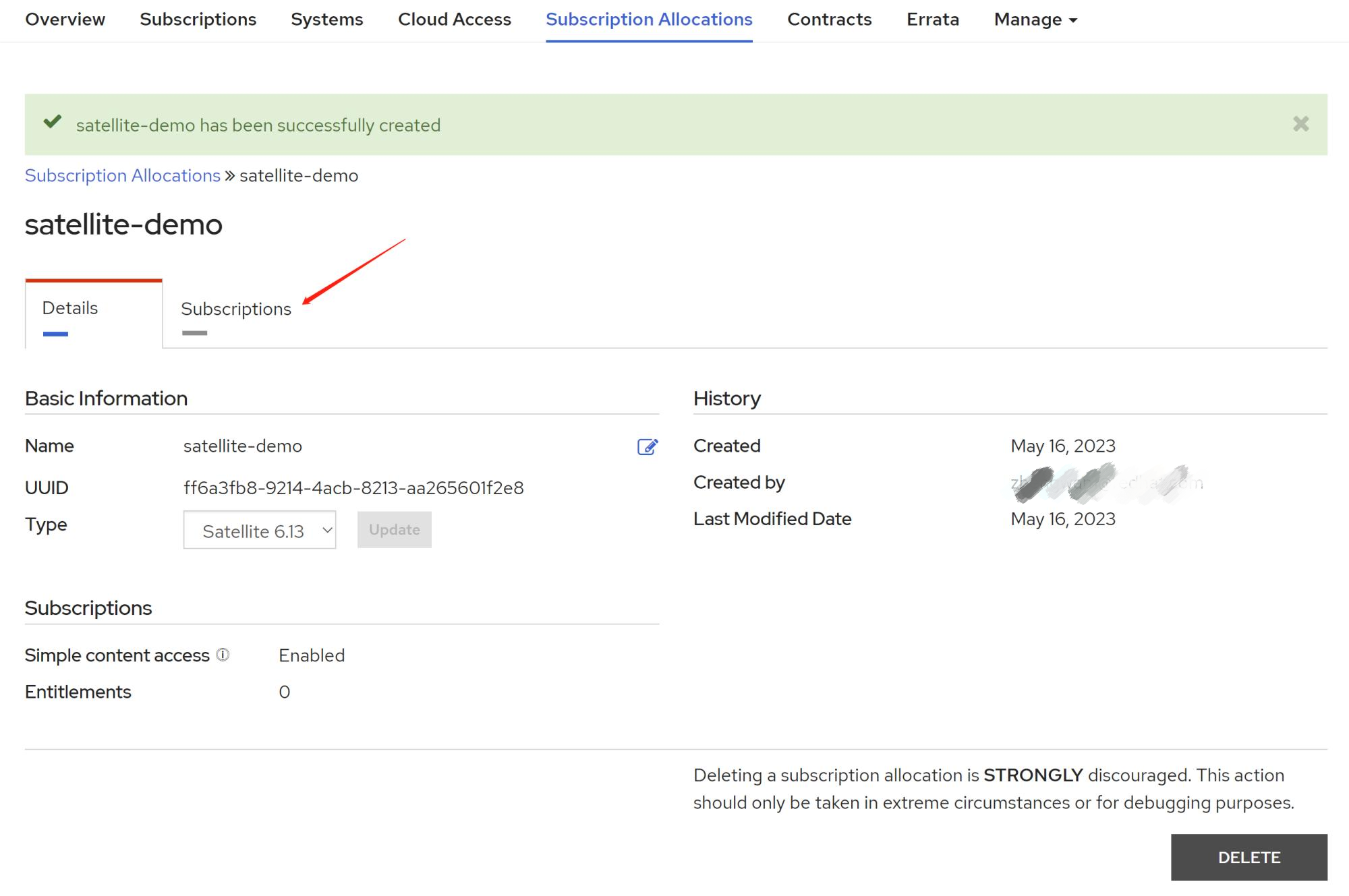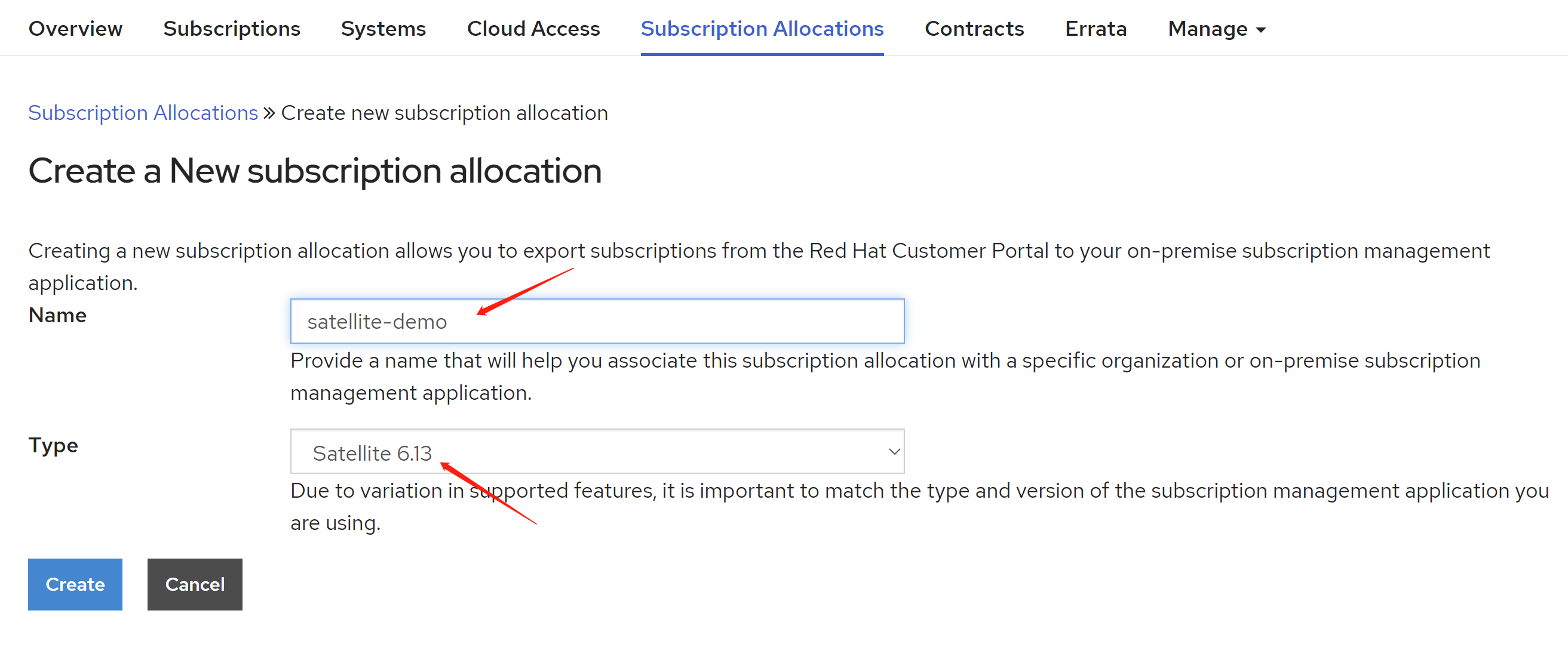 我们创建的订阅分配,类型和我们装的satellite版本要保持一致。