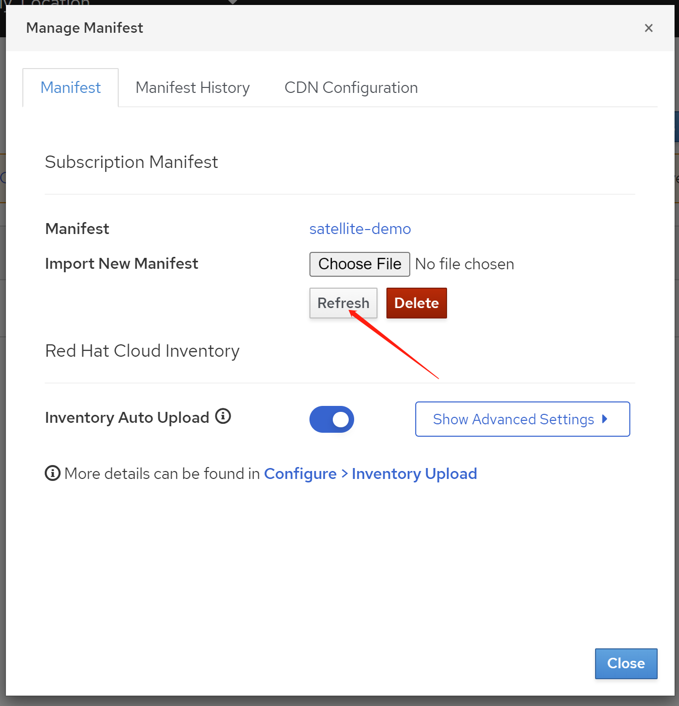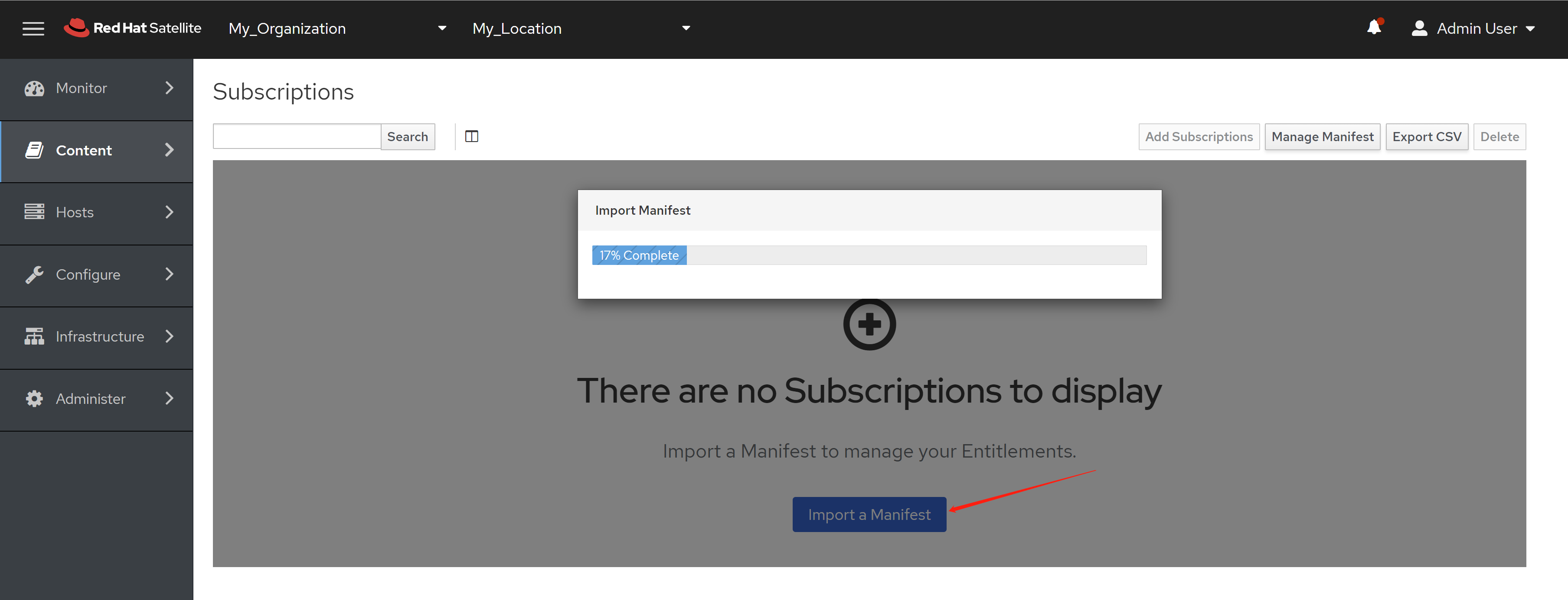 我们已经有了订阅信息文件,那么我们回到satellite管理界面里面,导入它。
