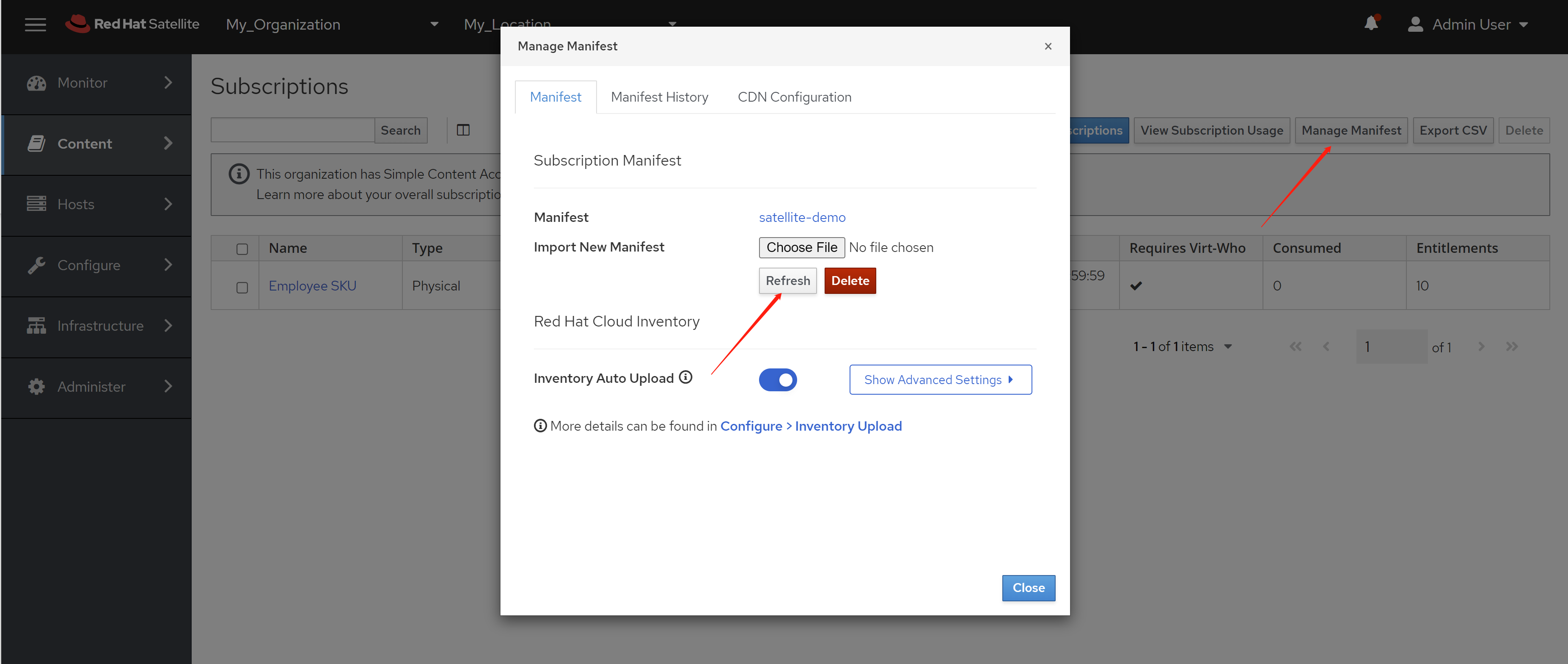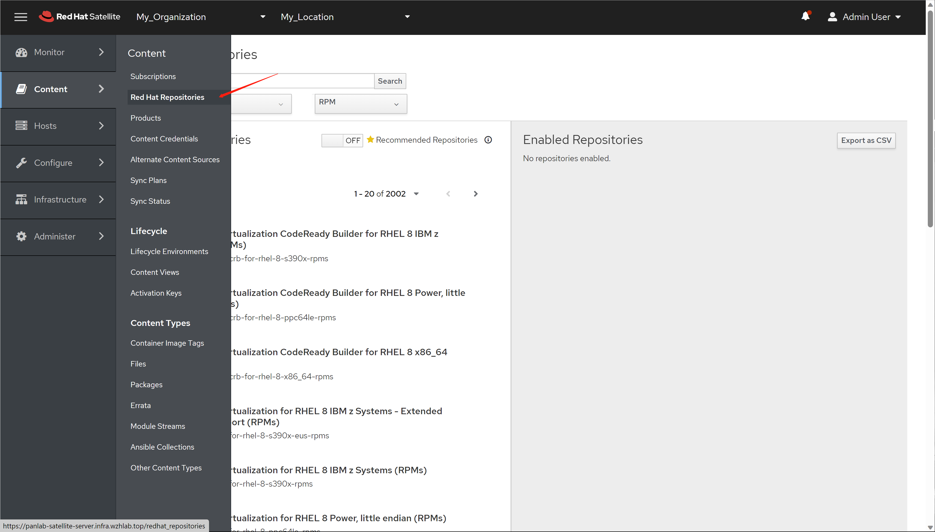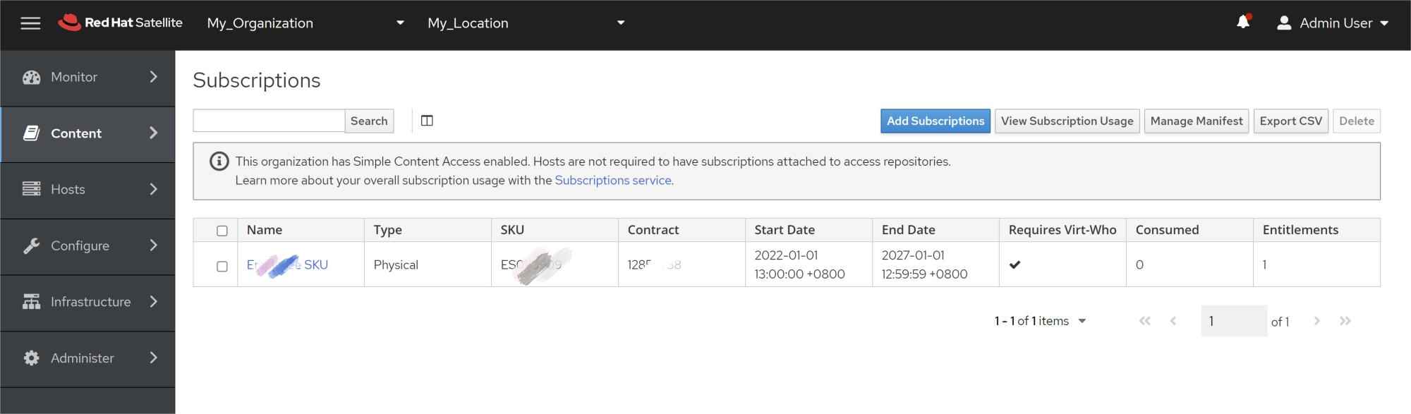 我们的业务场景,是内网主机都注册到satellite上来,这必然需要把红帽官网上的订阅信息导入到satellite里面去,我们来一步一步做一下。