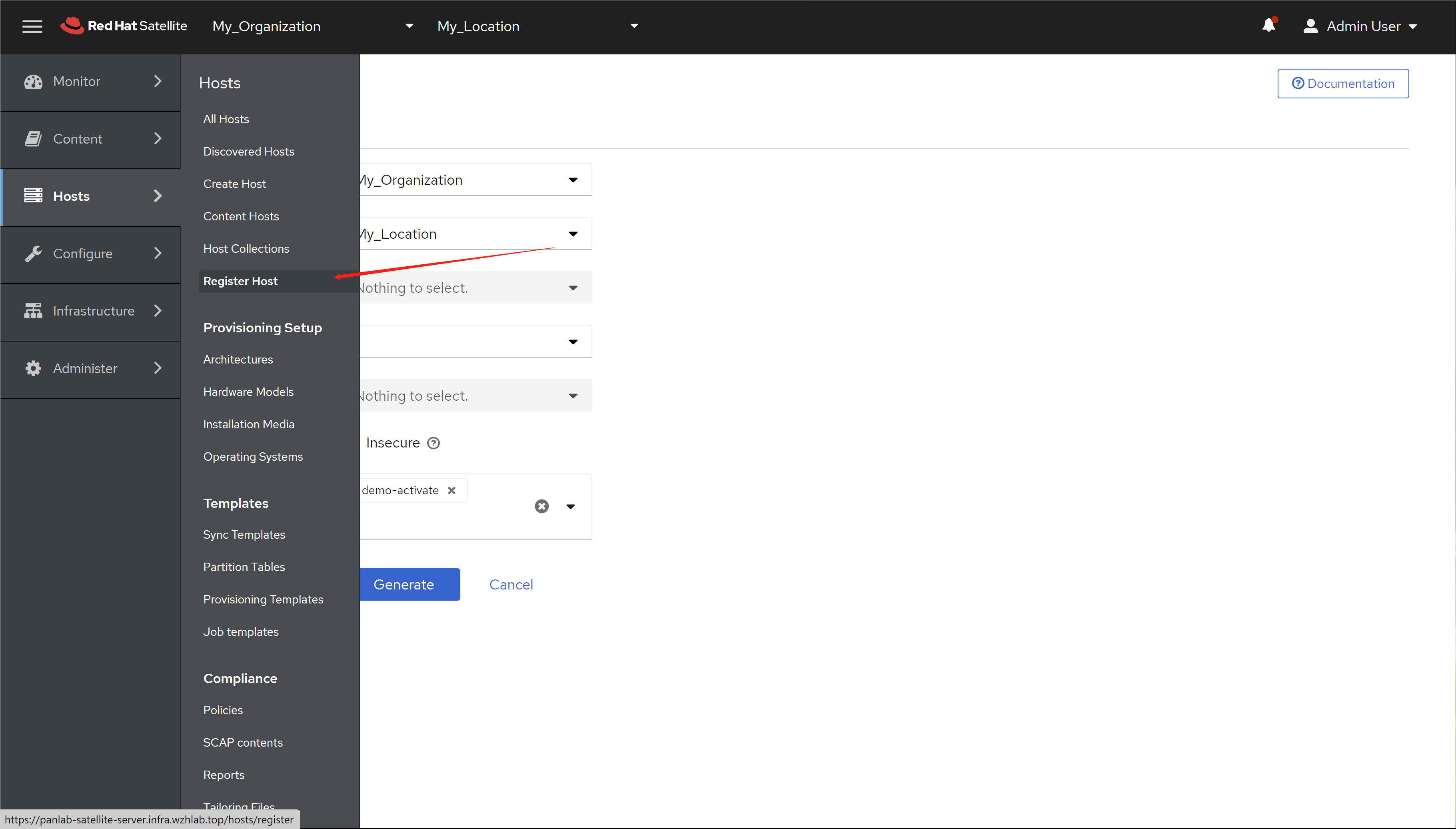 我们可以在系统里面,看到satellite server作为一个host已经存在了。
