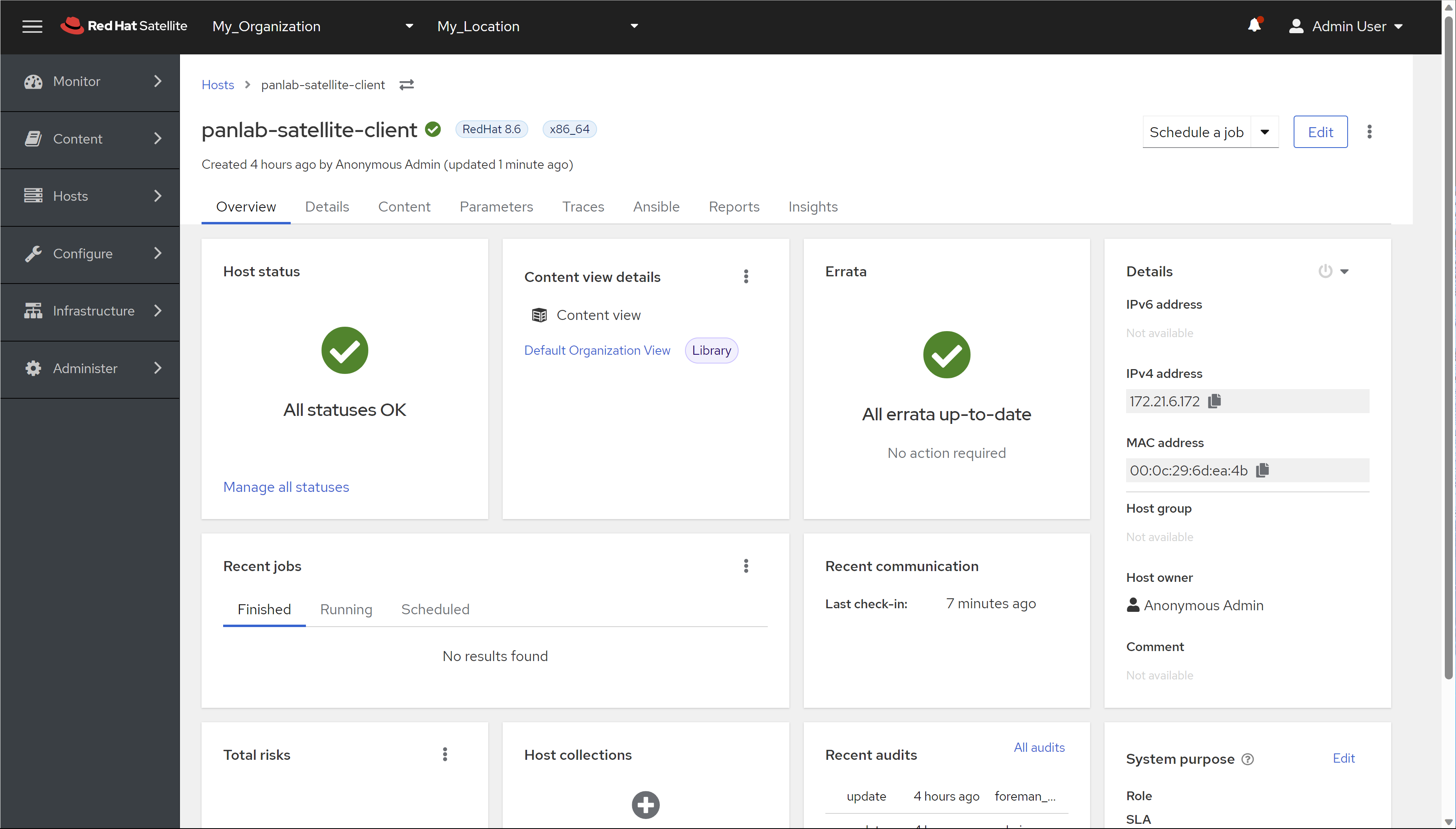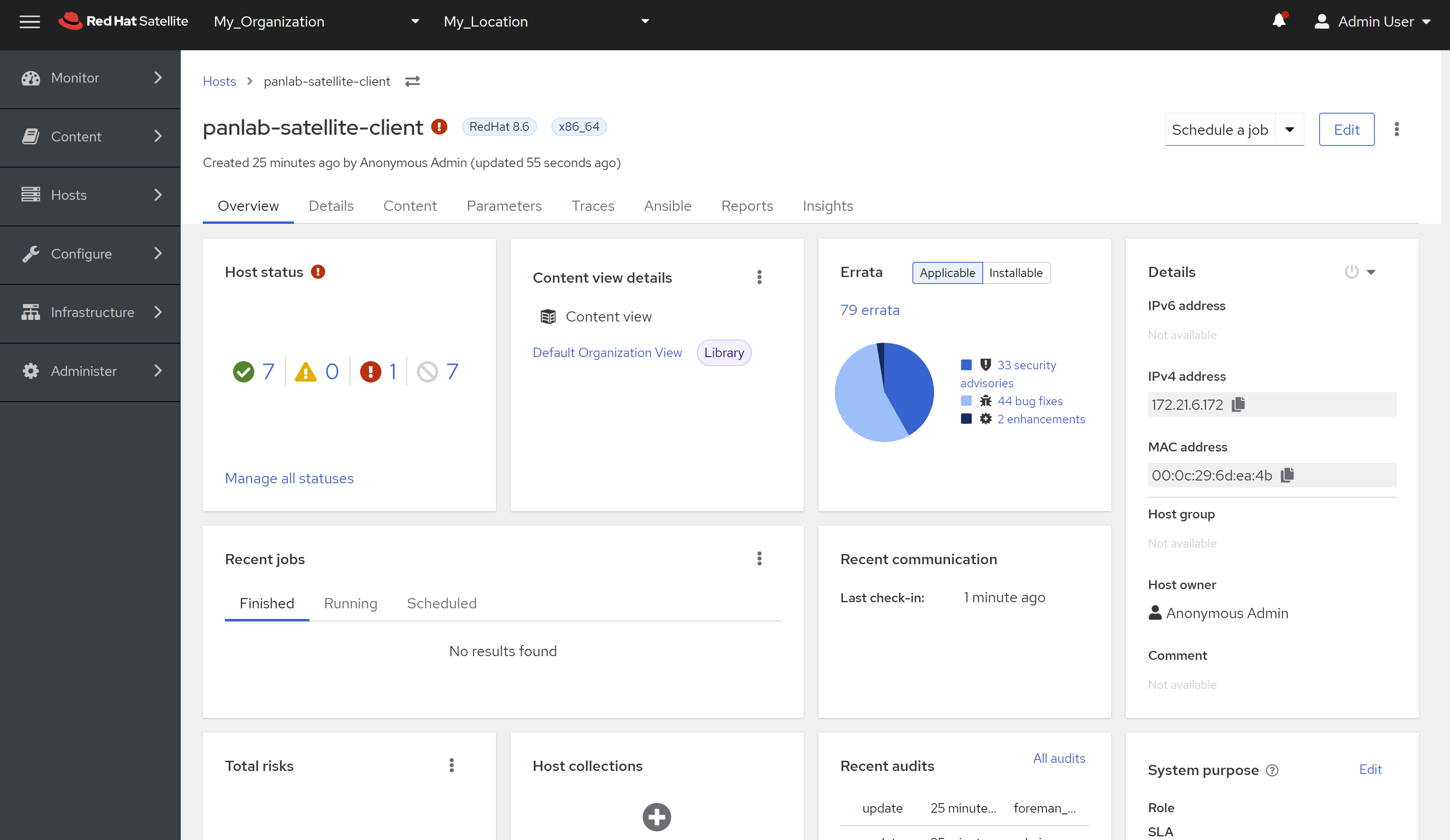 总结以下,satellite可以作为insight的proxy使用,但是在实验过程中,我发现insight的结果,只能在主机自己,和insight公网console上展现,而satellite上面,虽然有insight结果展示的入口页面,但是页面是空的,也许有别的配置吧。