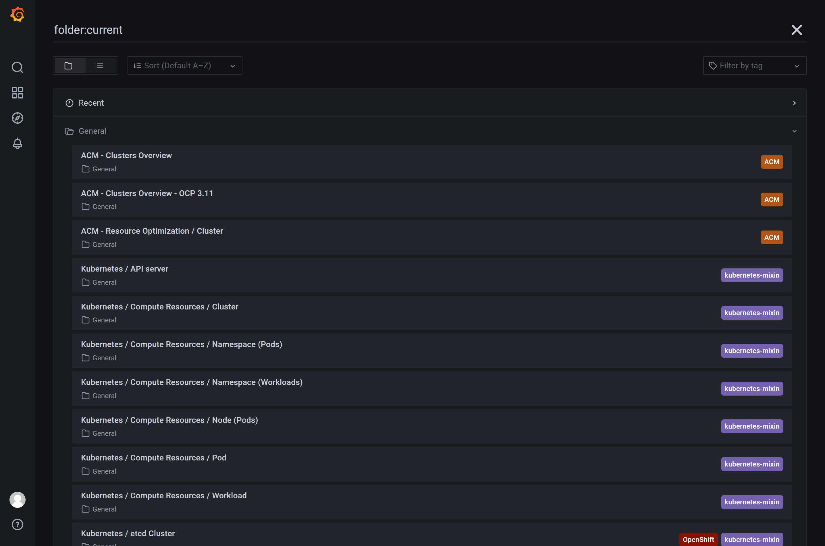 you can see there are 3 default dashboard included with acm, 2 of them are usable for ocp4