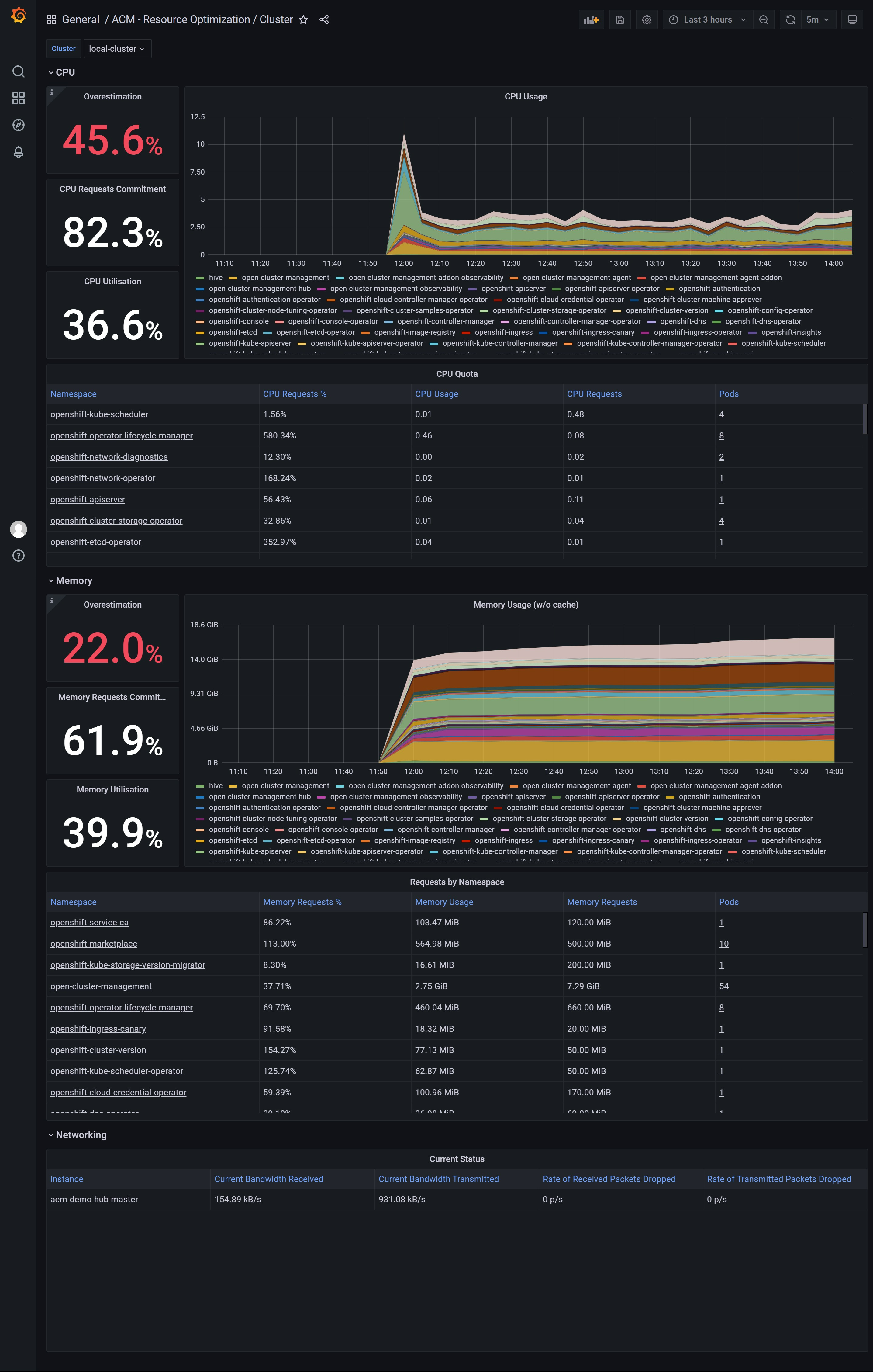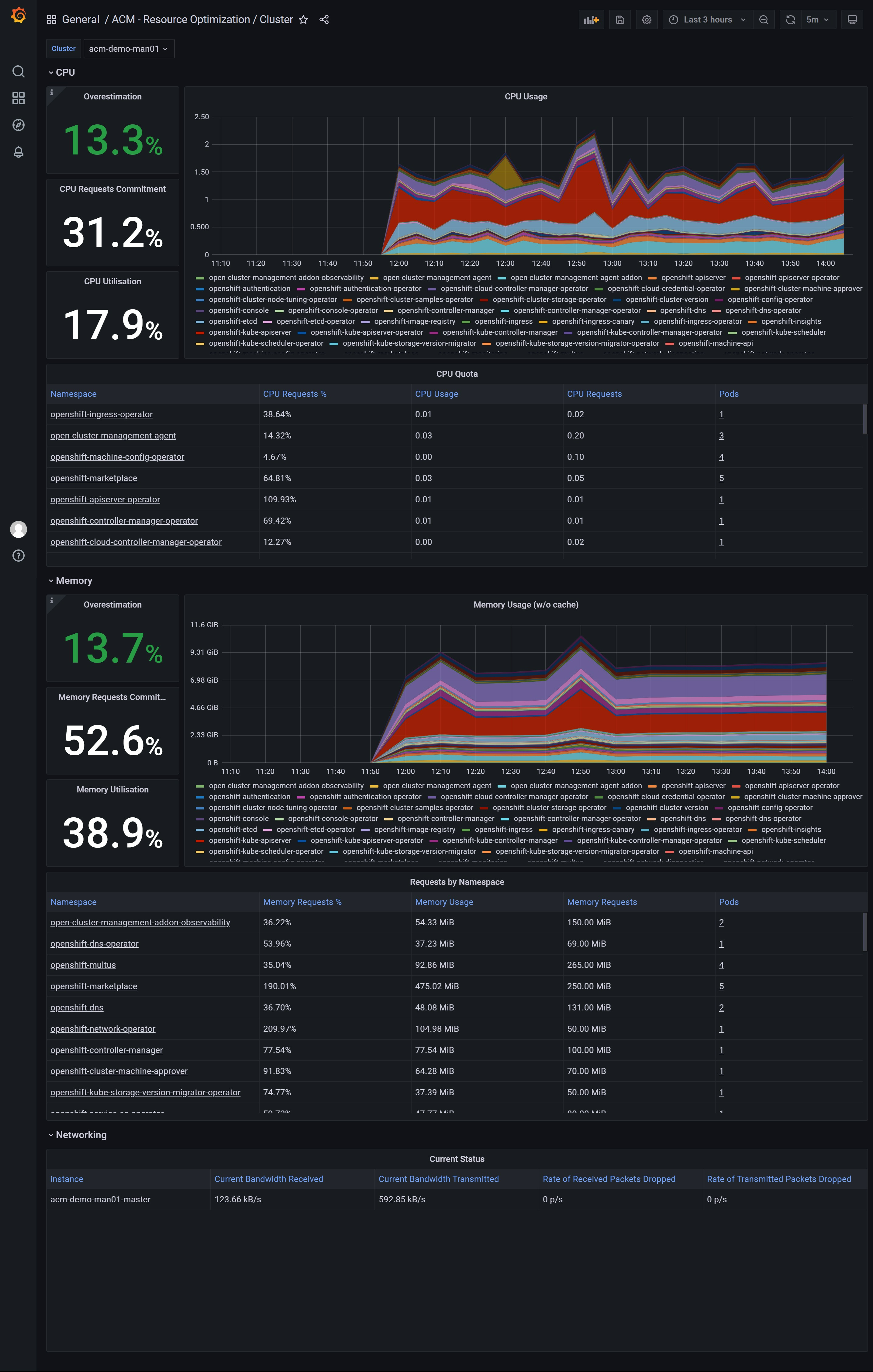 look at the ‘ACM - Resource Optimization / Cluster’ dashboard