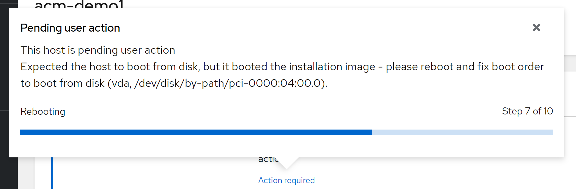 address: redfish-virtualmedia://192.168.7.1:8000/redfish/v1/Systems/$(cat /data/install/vm.list | grep acm-demo1-master0 | awk '{print $1}')