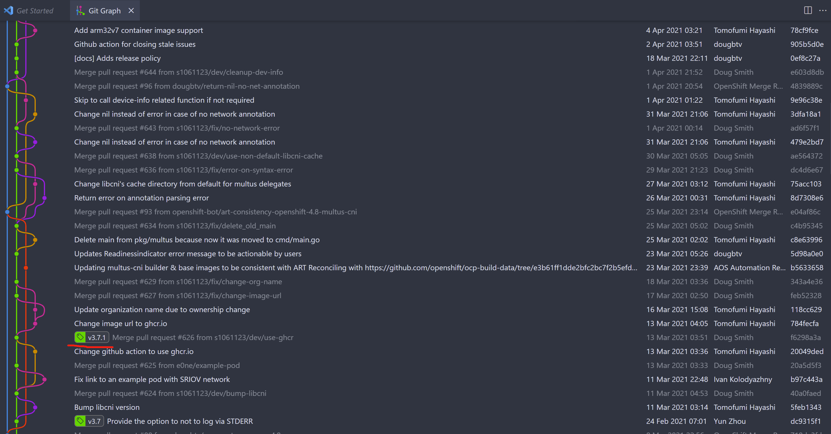 到这里,我们就知道了,openshift 4.9 使用的 multus ,是在 3.7.1 版本基础上打补丁出来的版本。