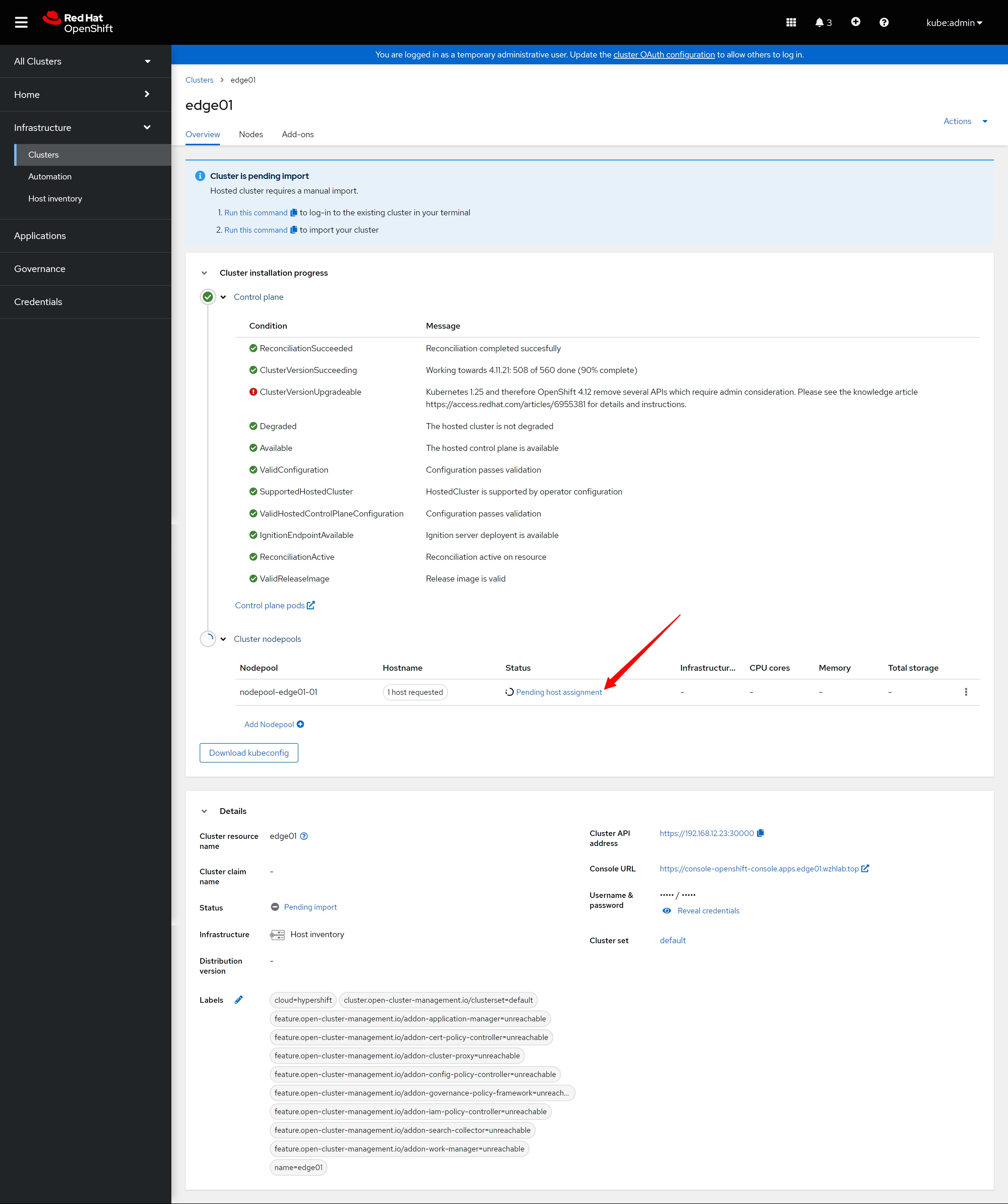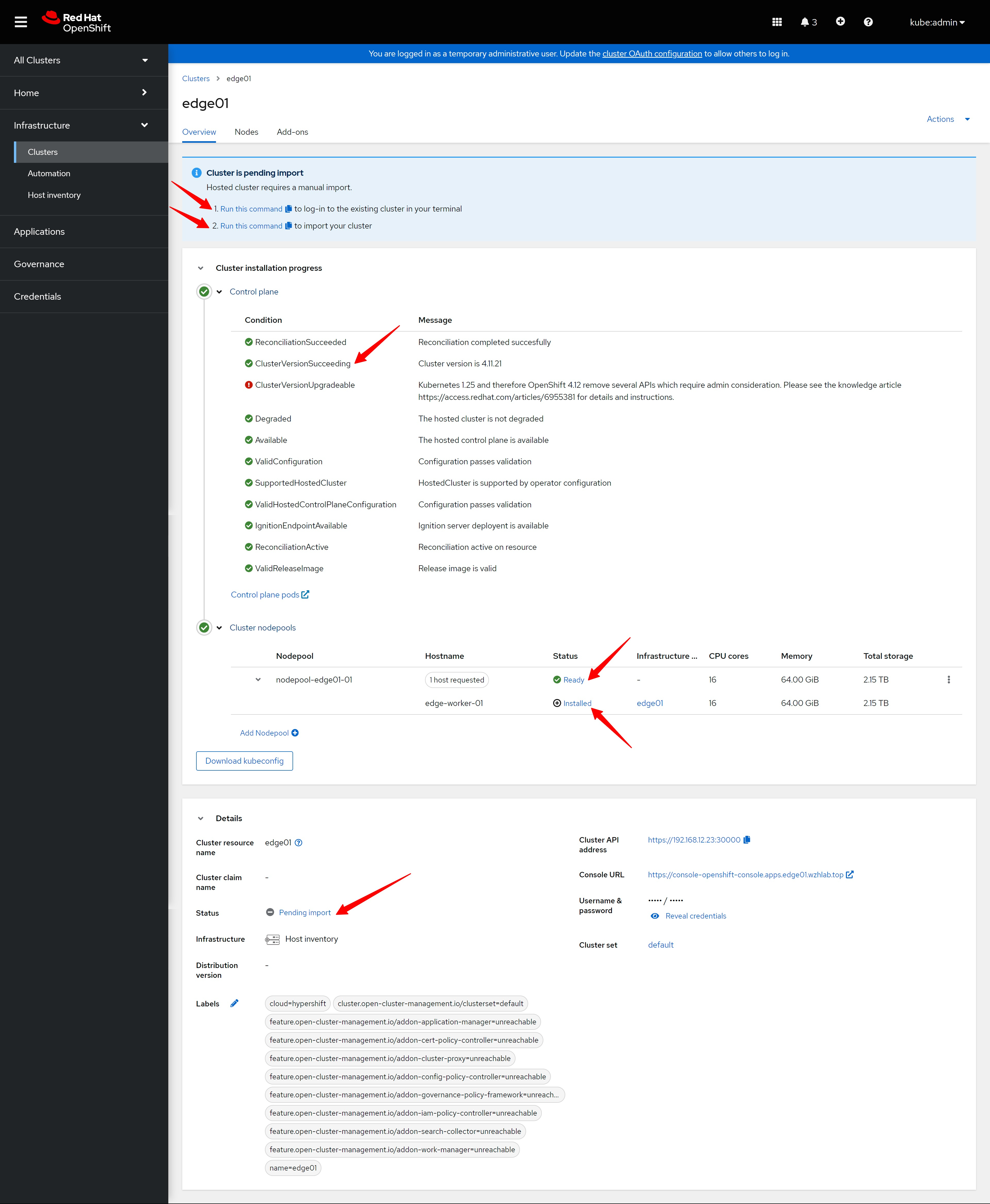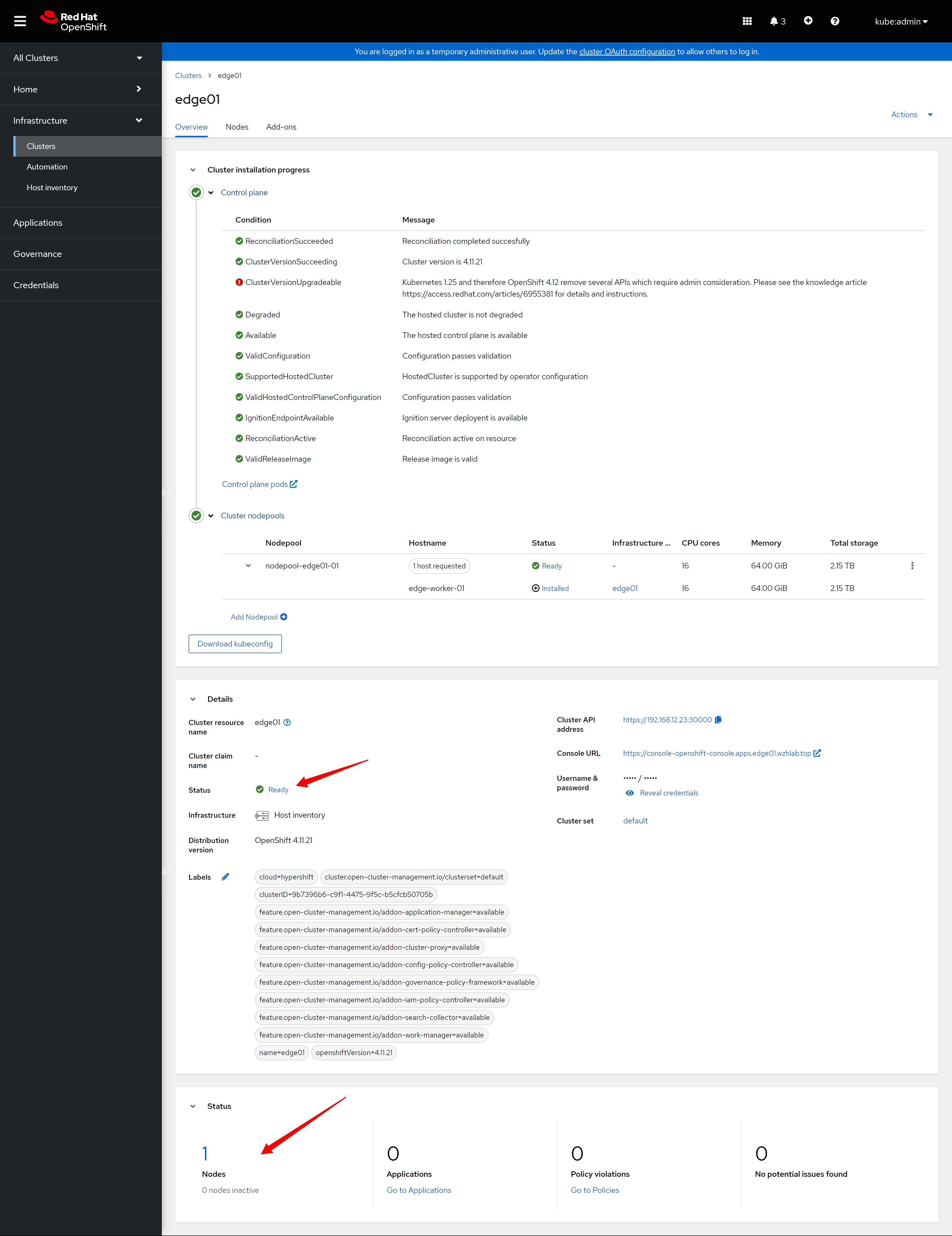 Let’s log in to the management page of the newly installed edge01 cluster to see.