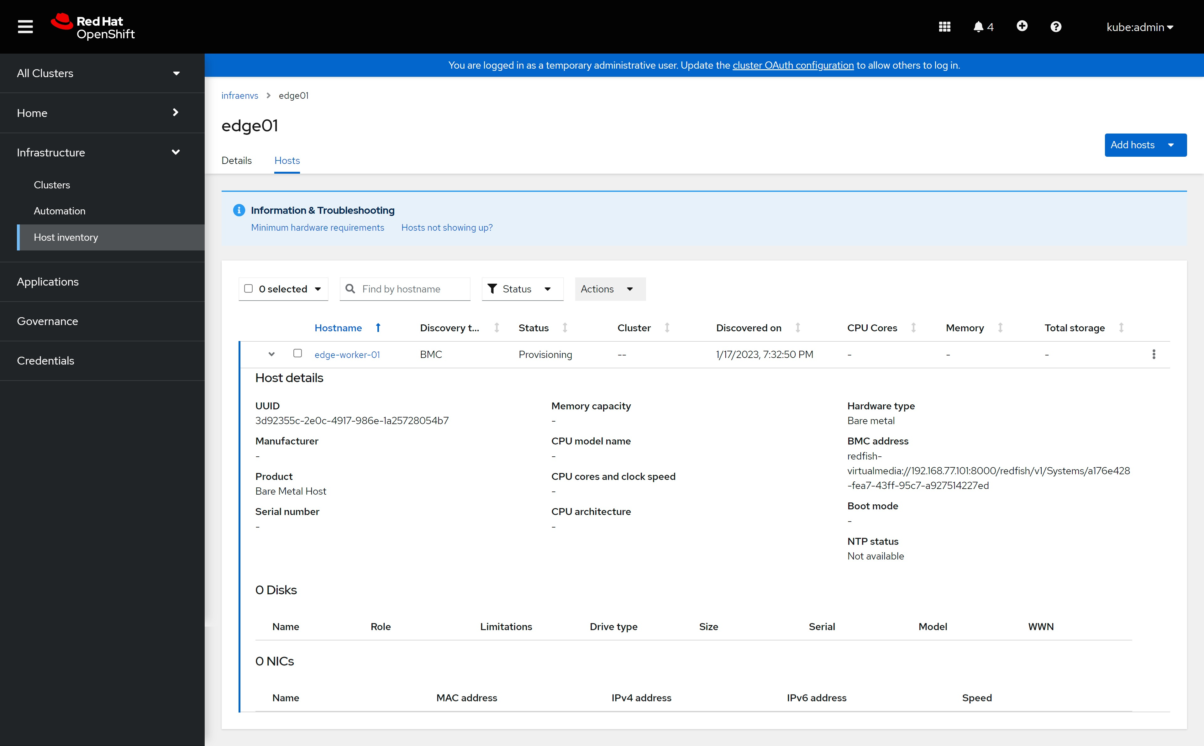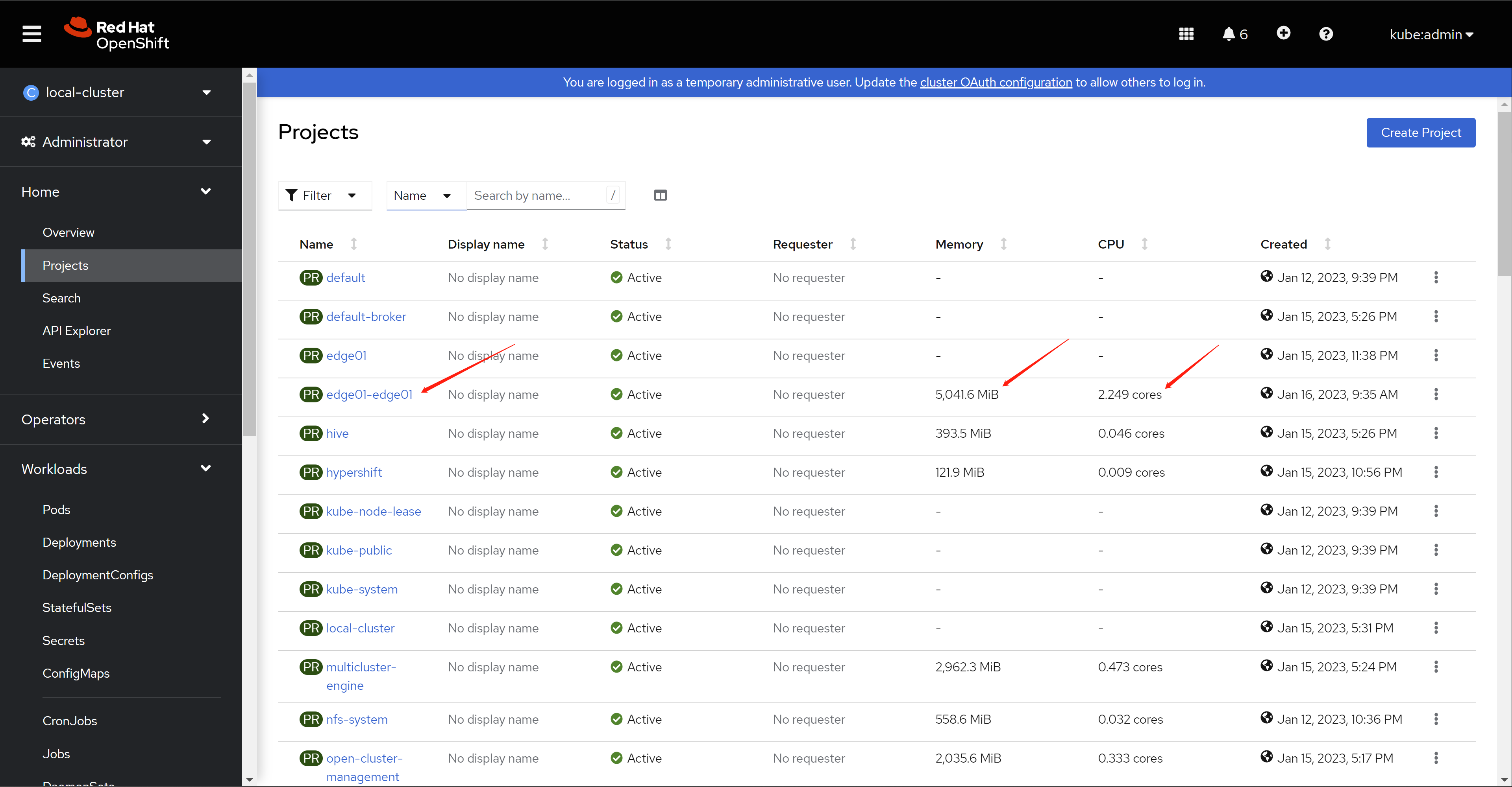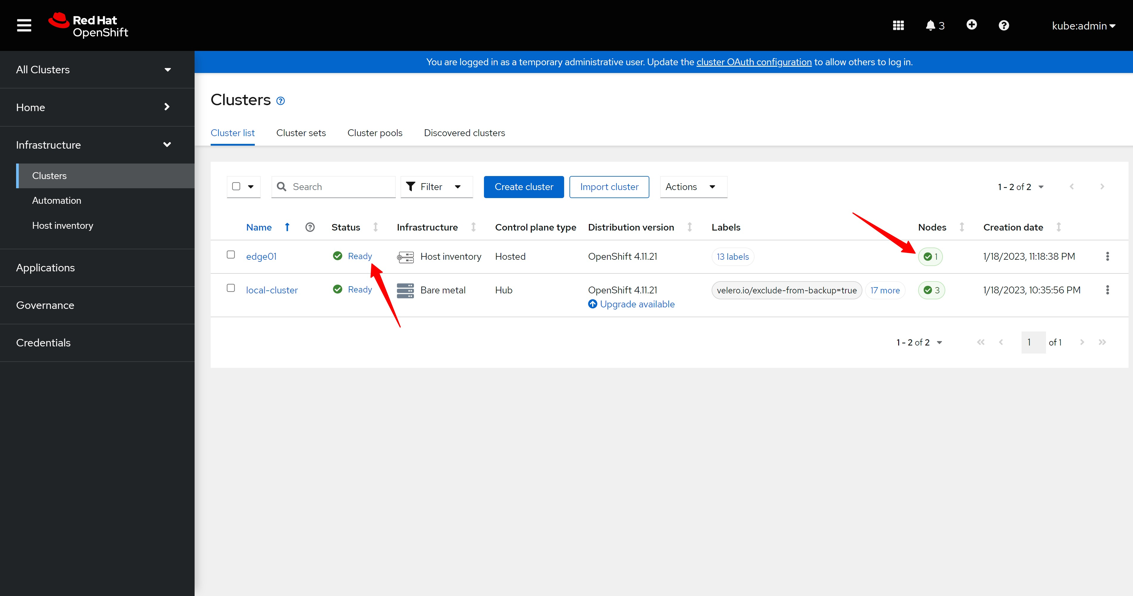 Let’s log in to the management page of the newly installed edge01 cluster to see.