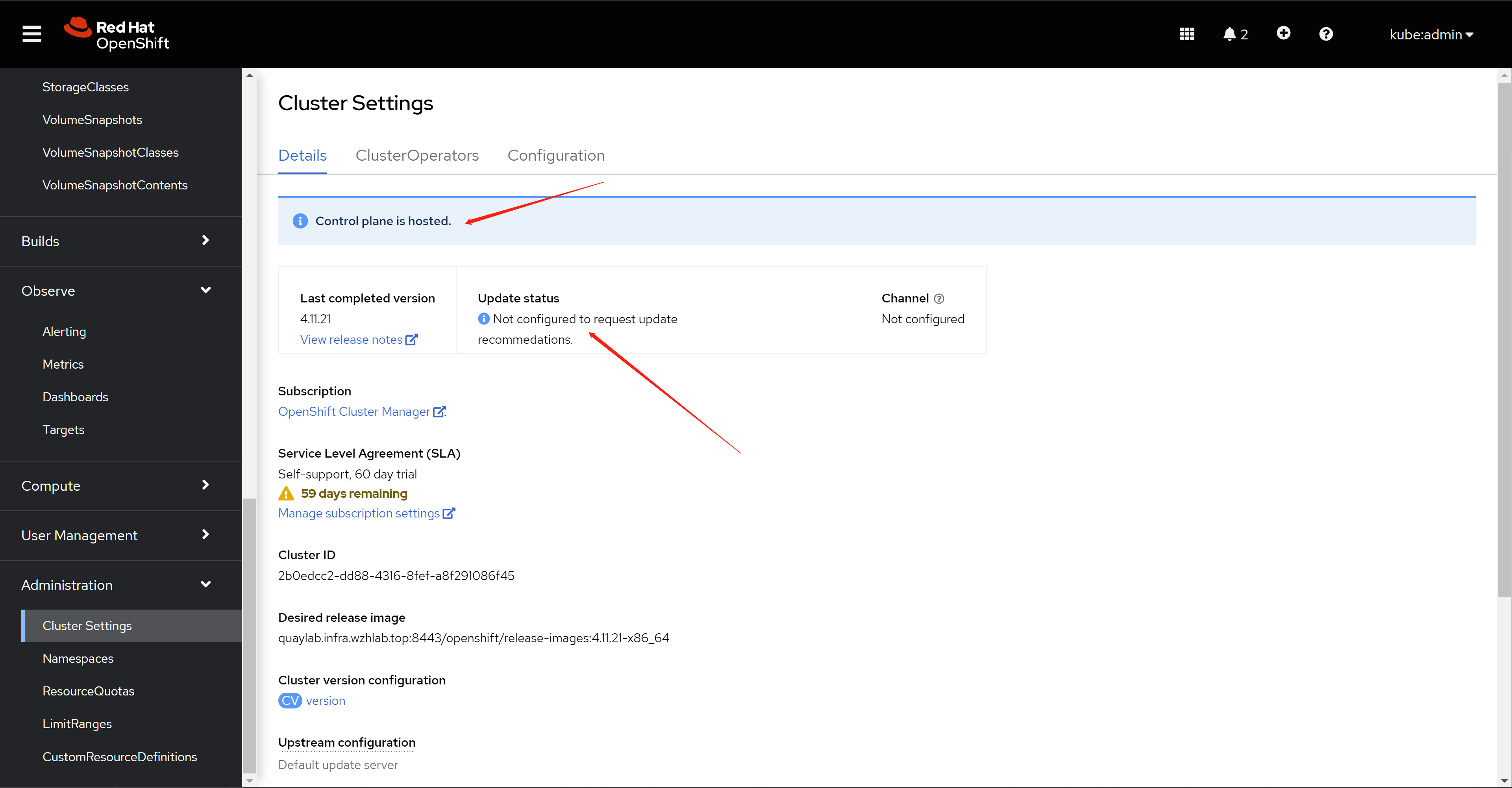 新的edge01集群,是不能自行升级的,提示这是一个特殊的hosted集群。