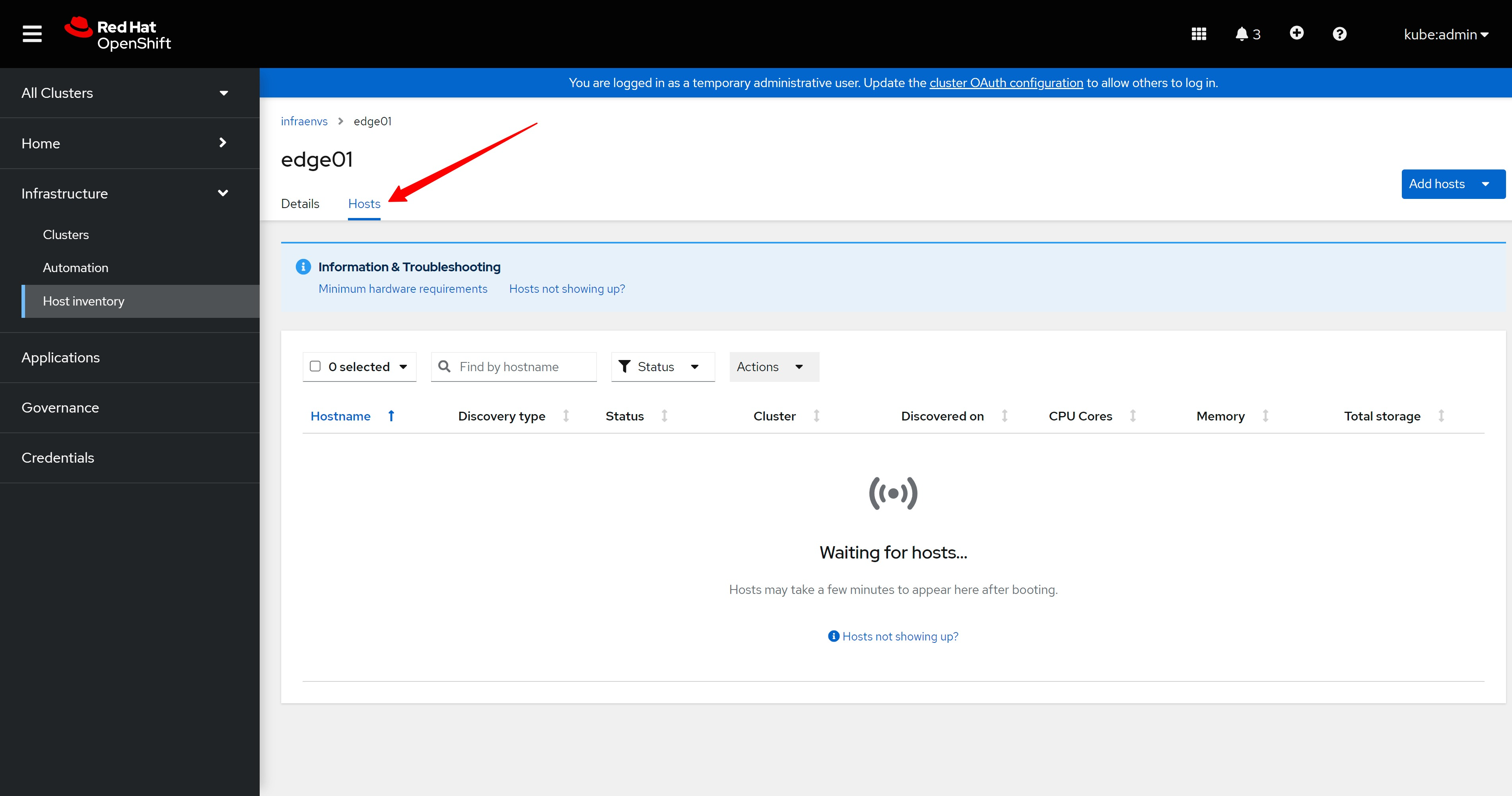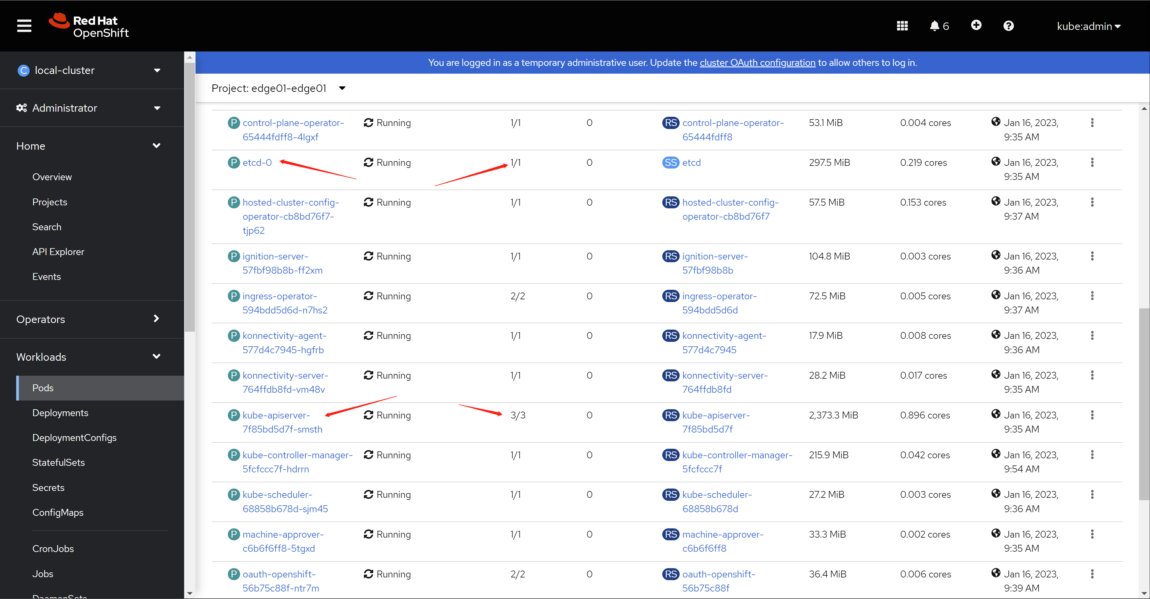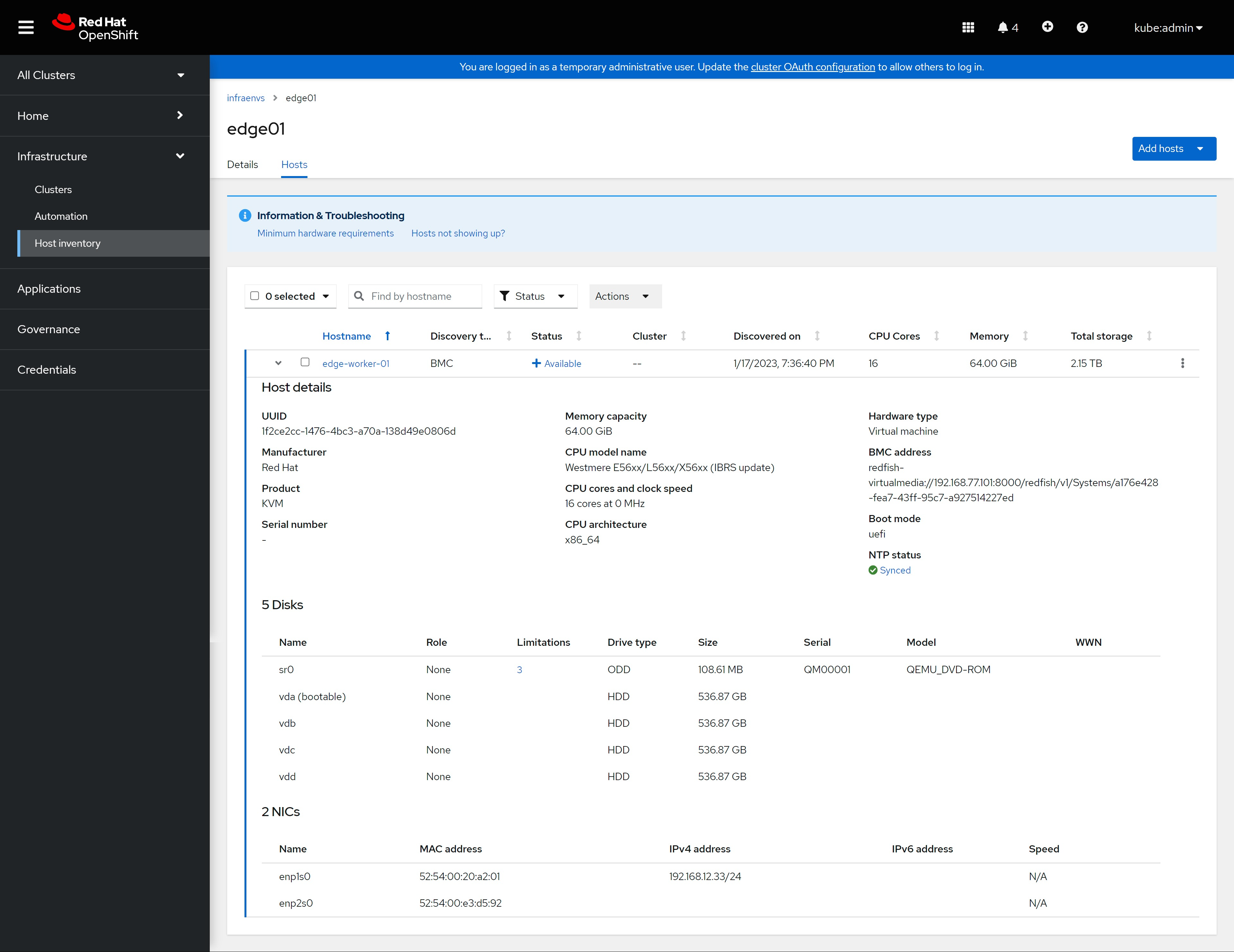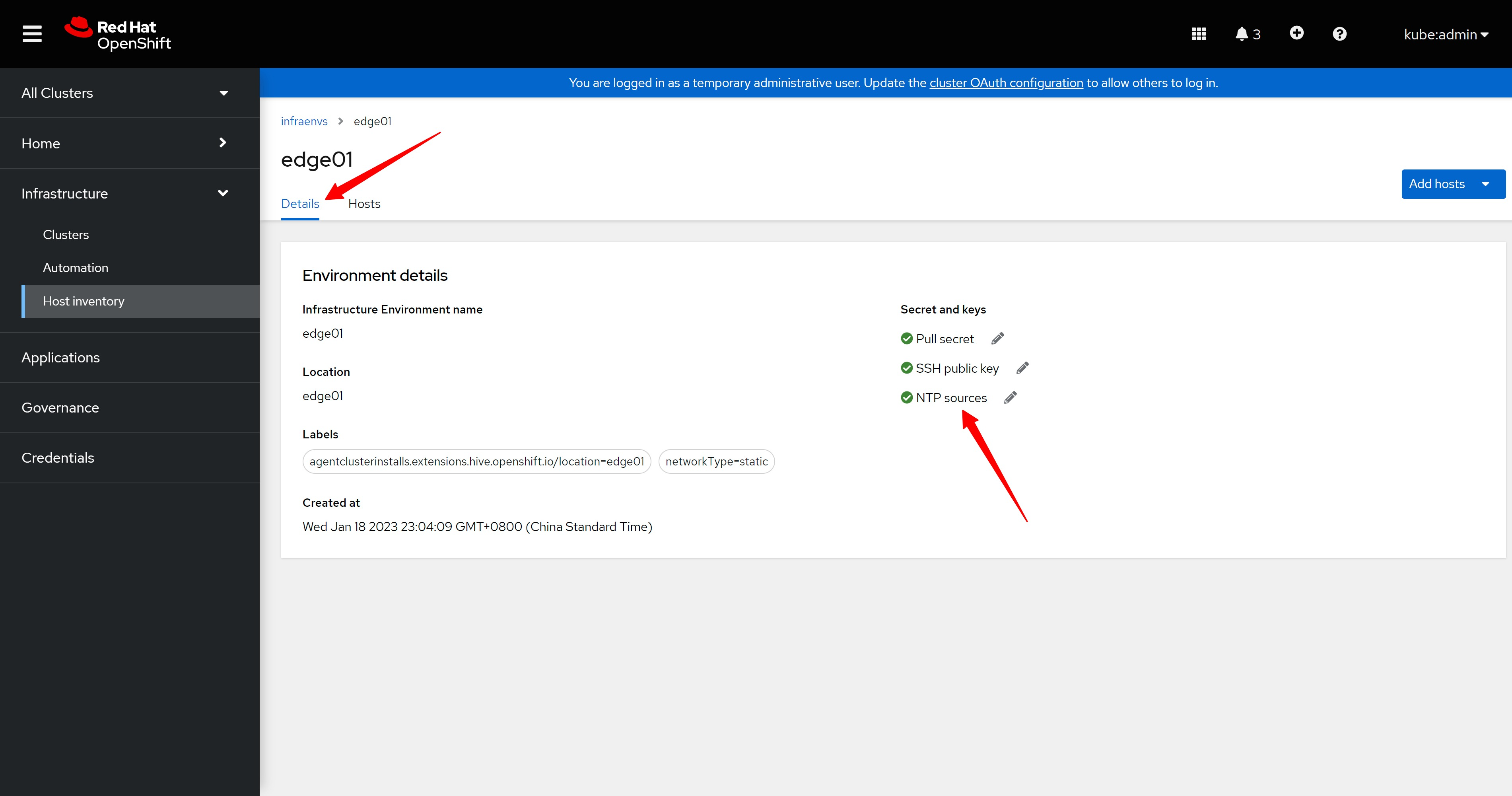 Next, we log in to the new edge01 cluster through the command line, and see what is special about this new cluster on the command line.