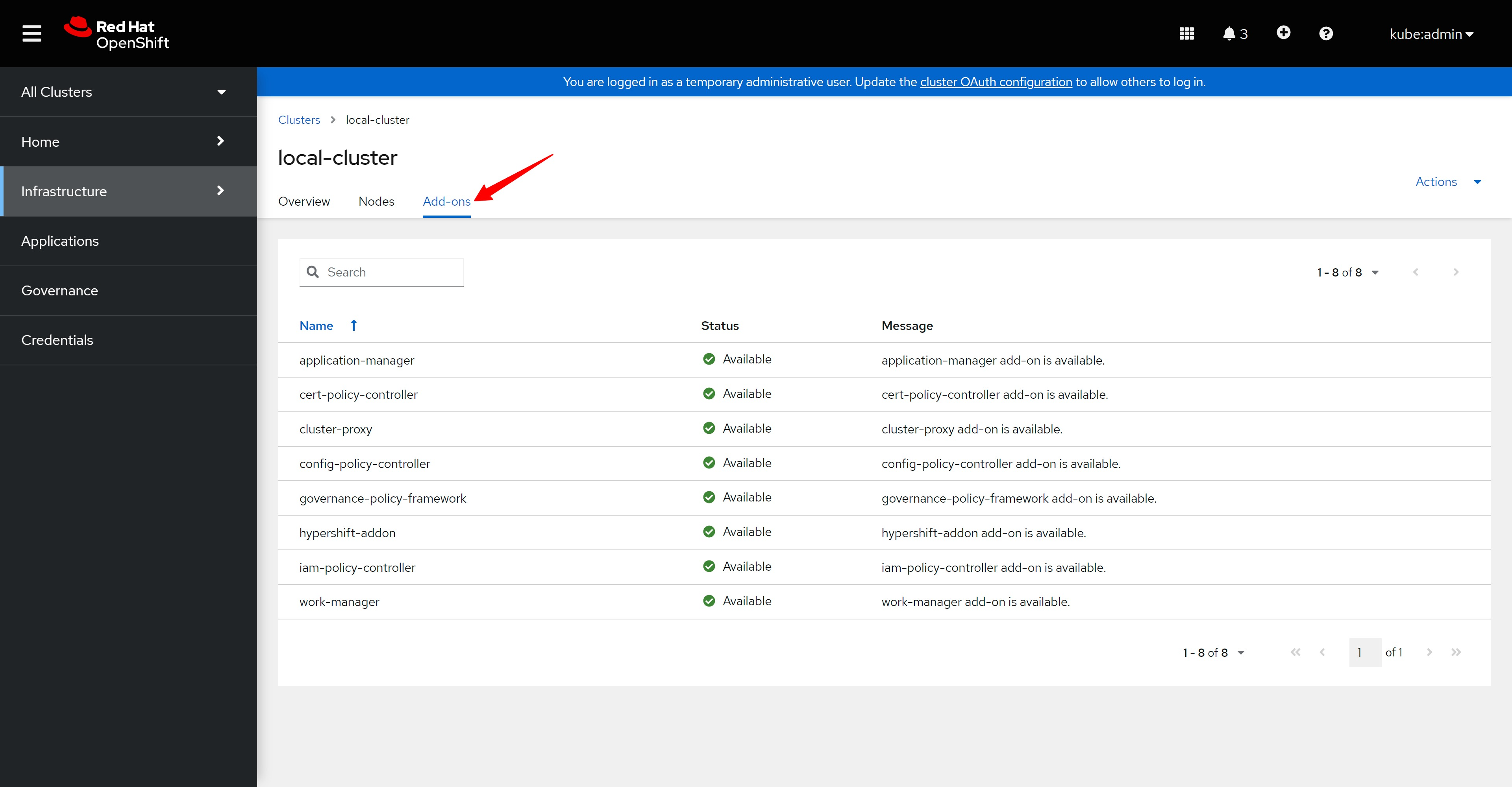 oc create --save-config -f ${BASE_DIR}/data/install/managed-cluster-addon.yaml