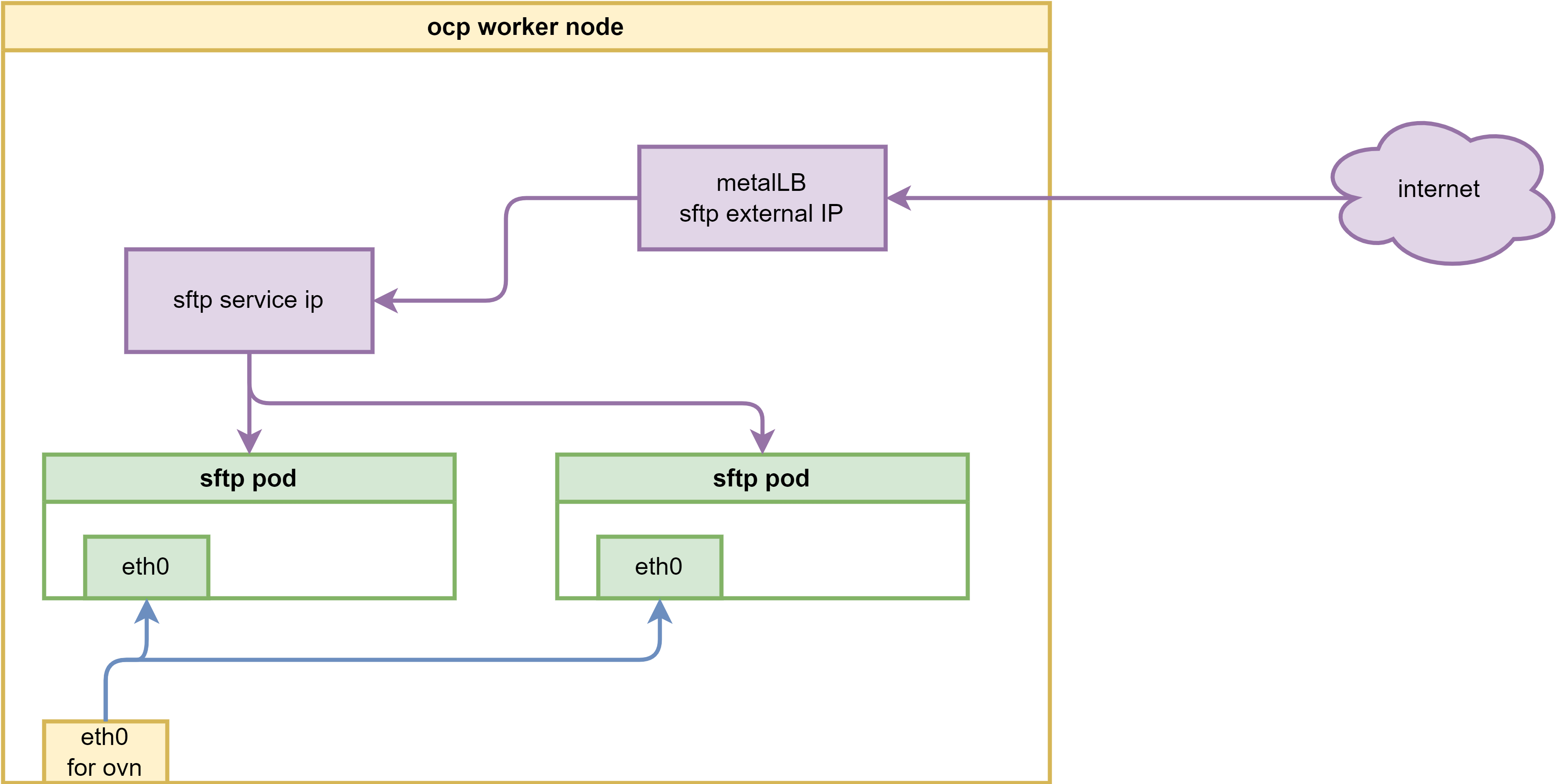 Customer wants to run sftp service in pod, and expose it to the internet. How can we do that? We know that the ingress only support http/https. Here we show several ways to do that.