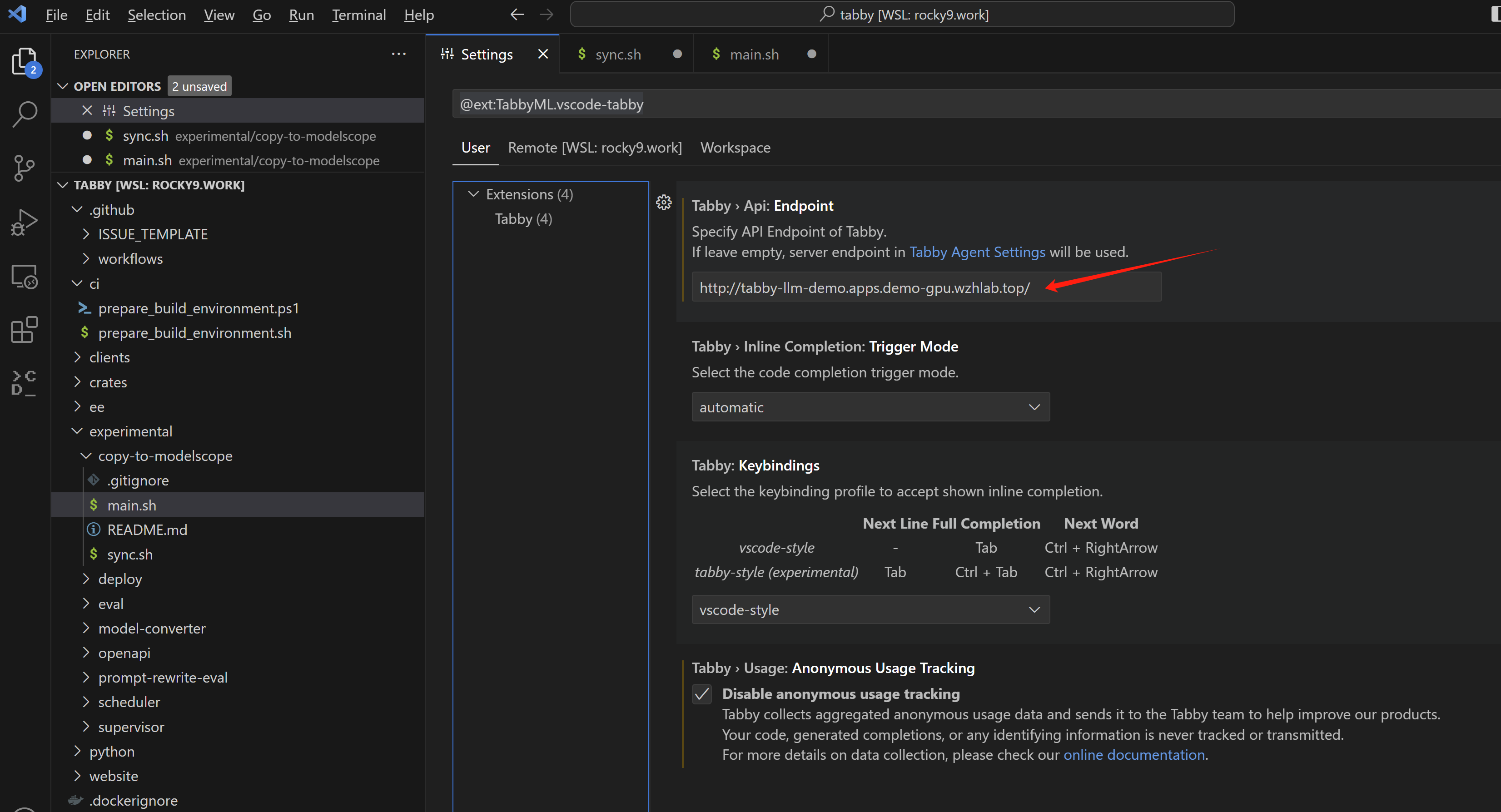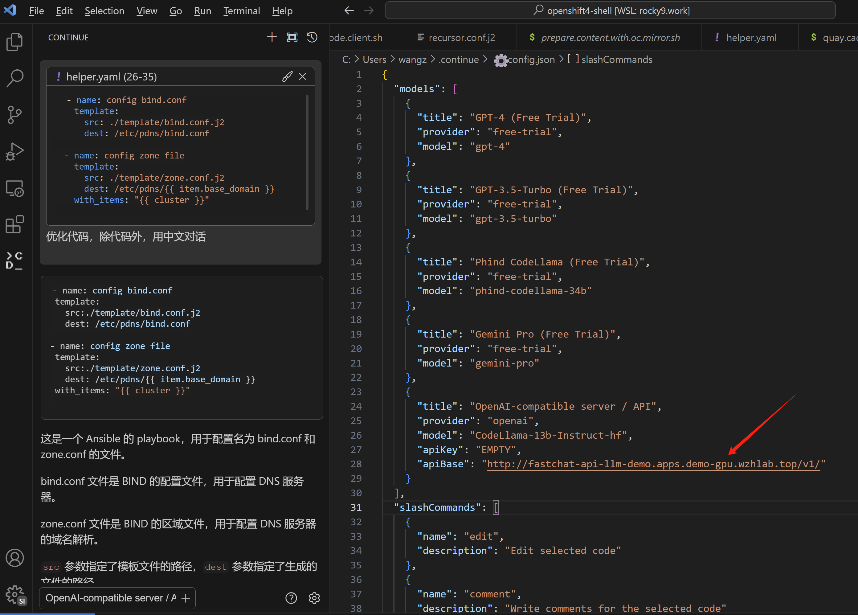 最后就是配置vscode,指向openshift的 router,然后就可以使用codellama了。