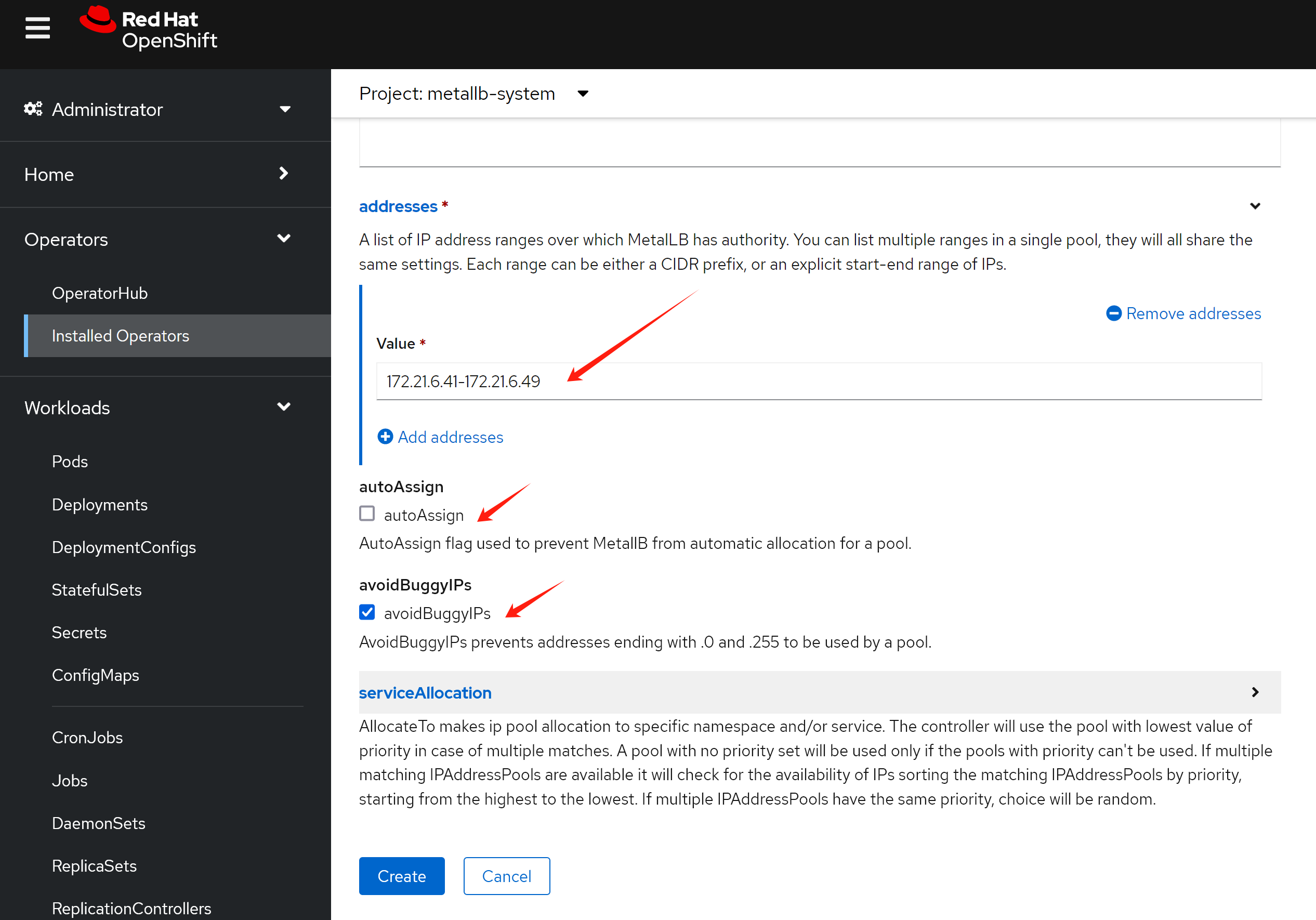 openshift 官方文档就有metalLB的手册,照着做就可以啦。