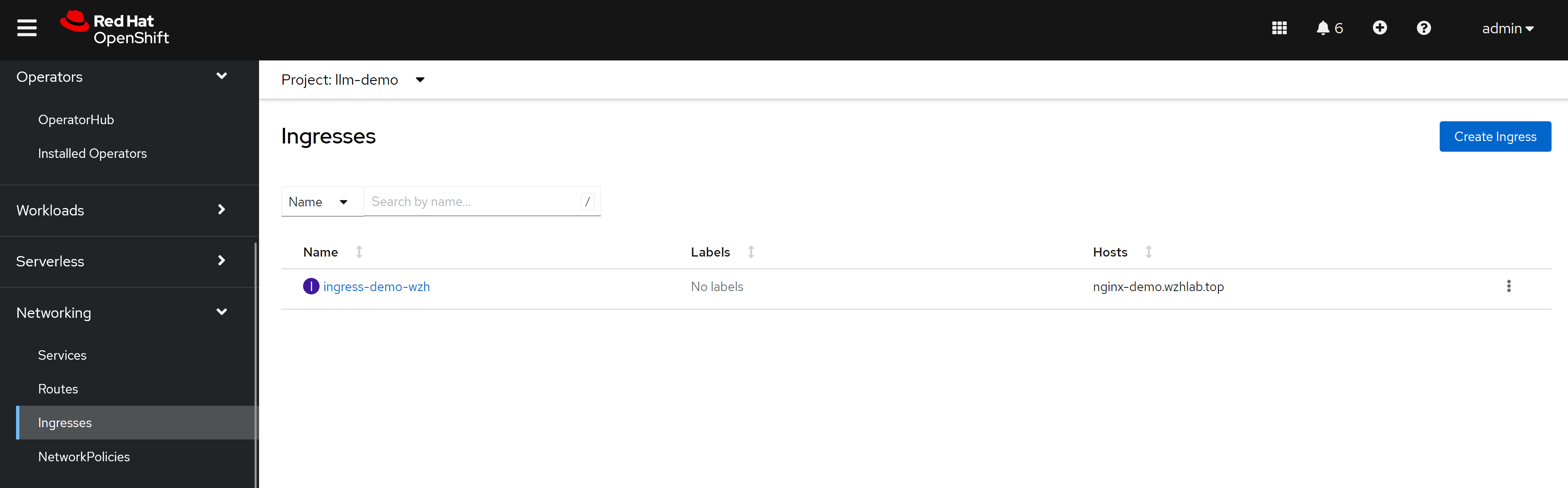 # securitycontextconstraints.security.openshift.io/nginx-ingress-admin created然后创建一个ingress 实例