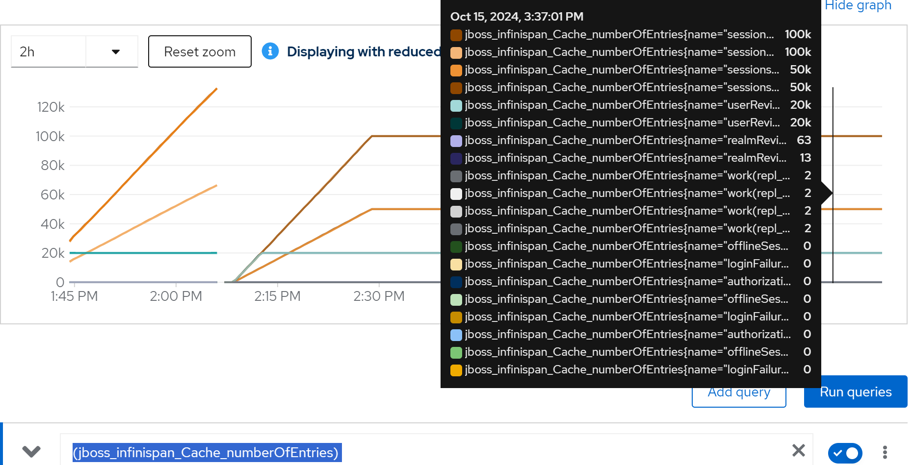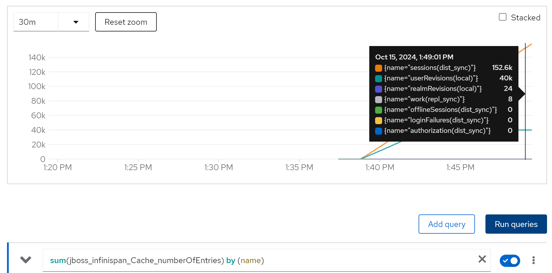 jboss_infinispan_Cache_numberOfEntries{name=“"sessions(dist_sync)"”}