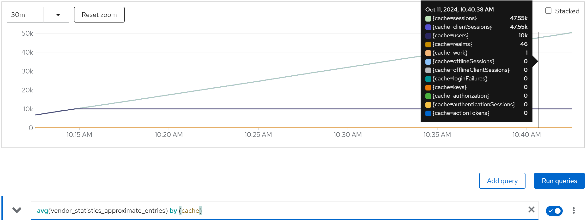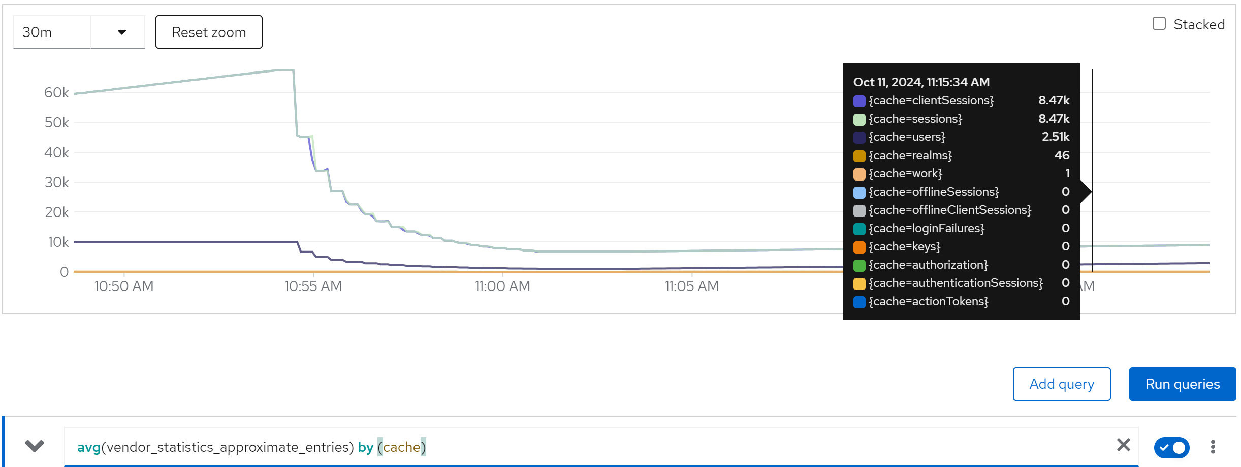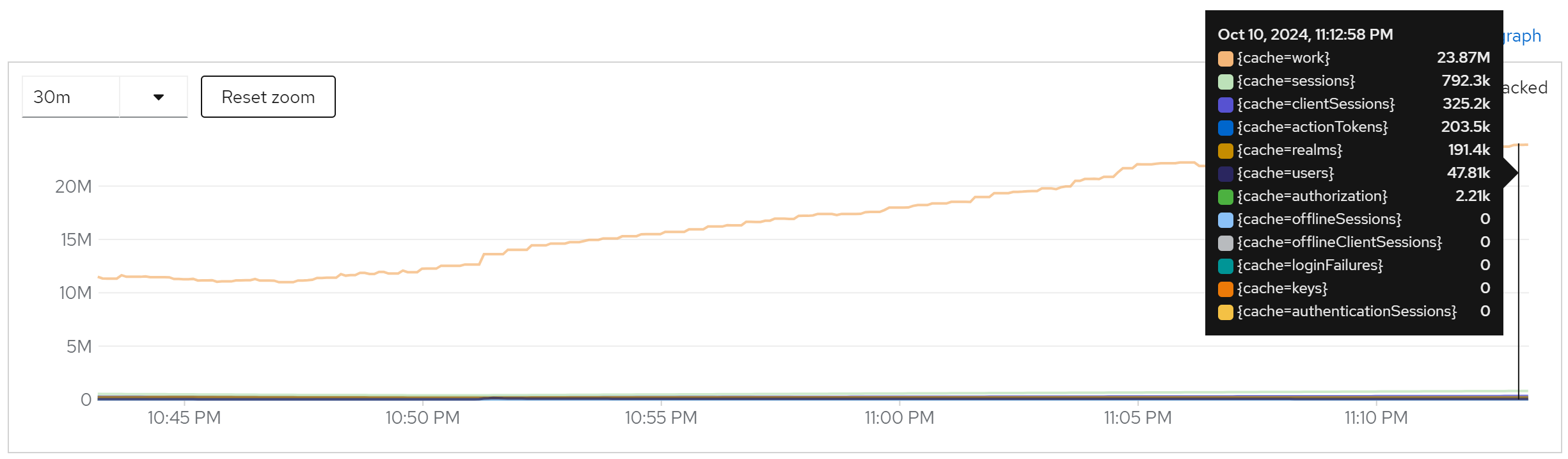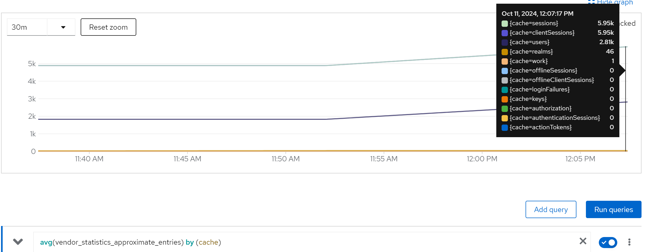 jboss_infinispan_Cache_numberOfEntries{name=“"sessions(dist_sync)"”}