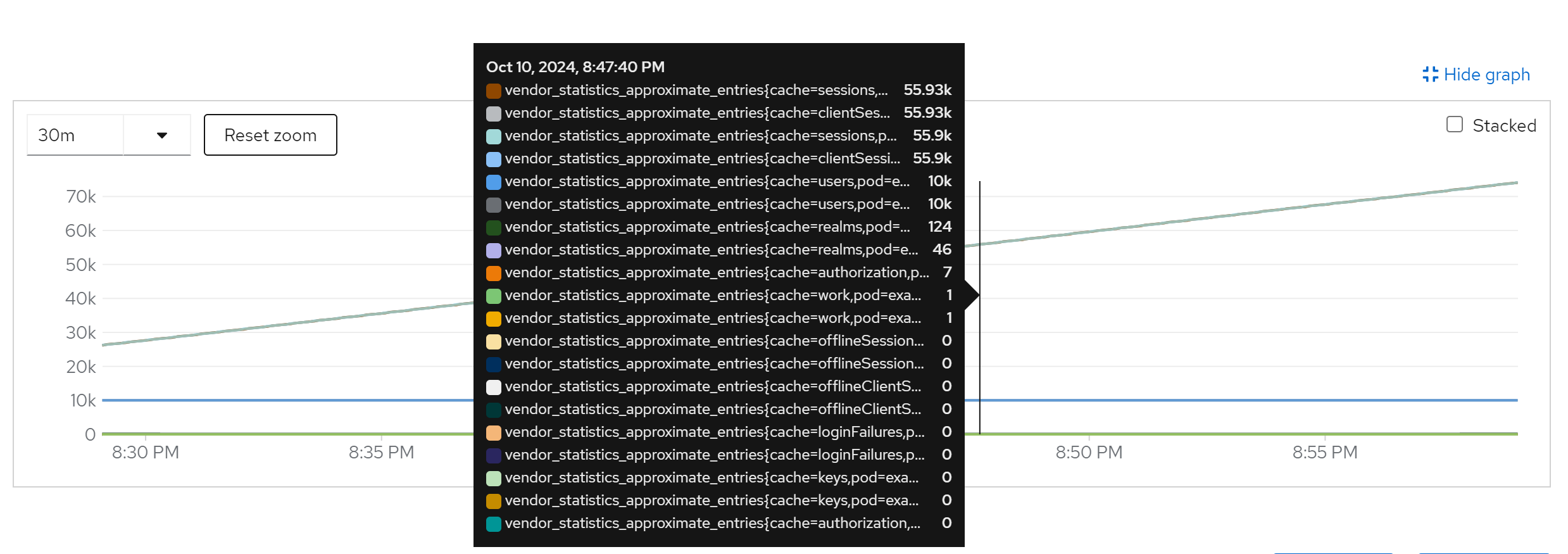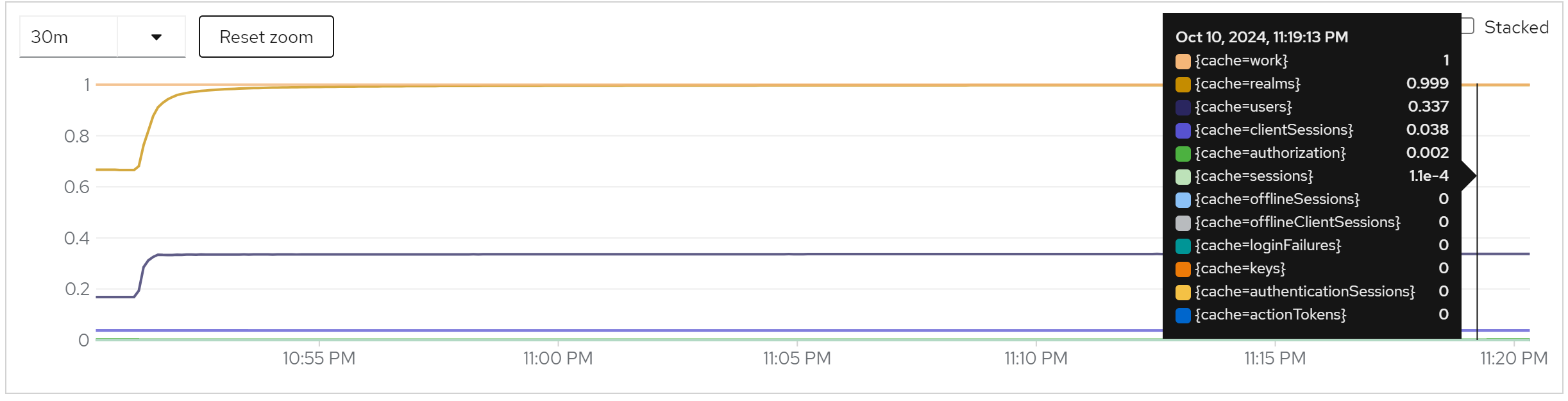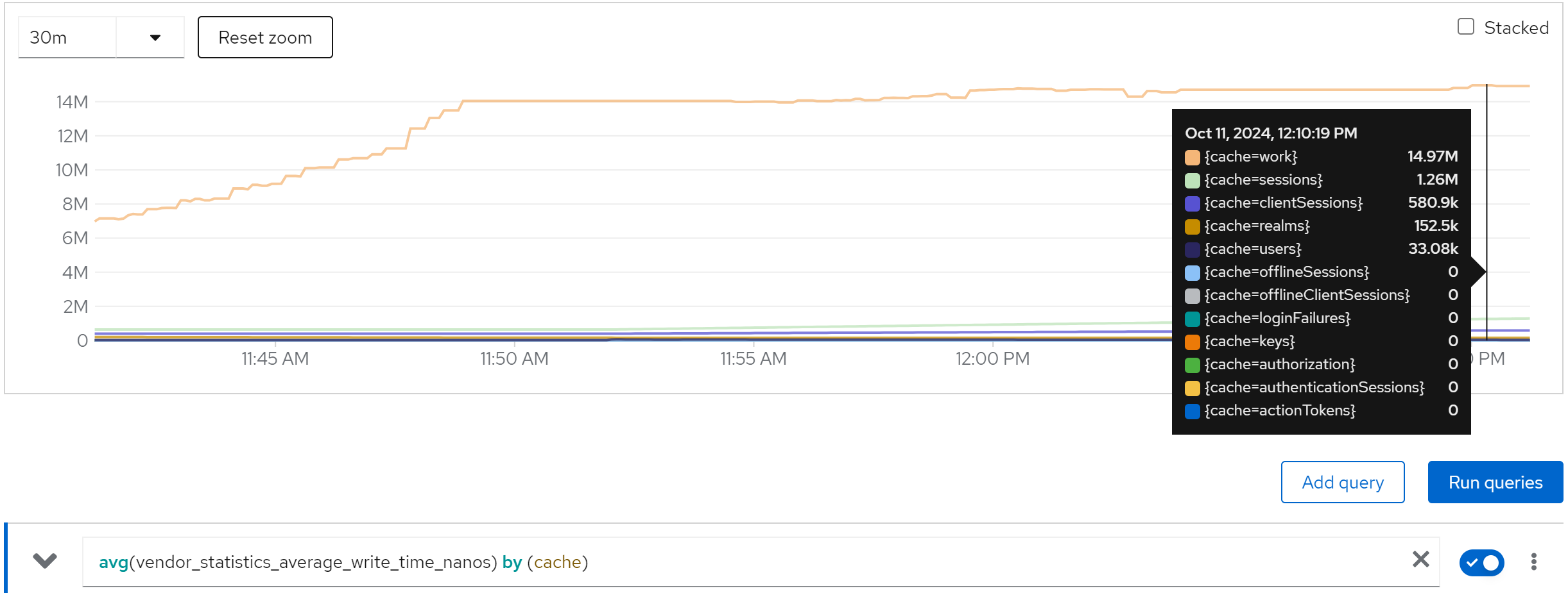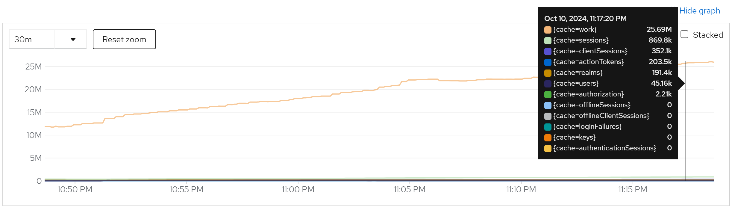jboss_infinispan_Cache_numberOfEntries{name=“"sessions(dist_sync)"”}