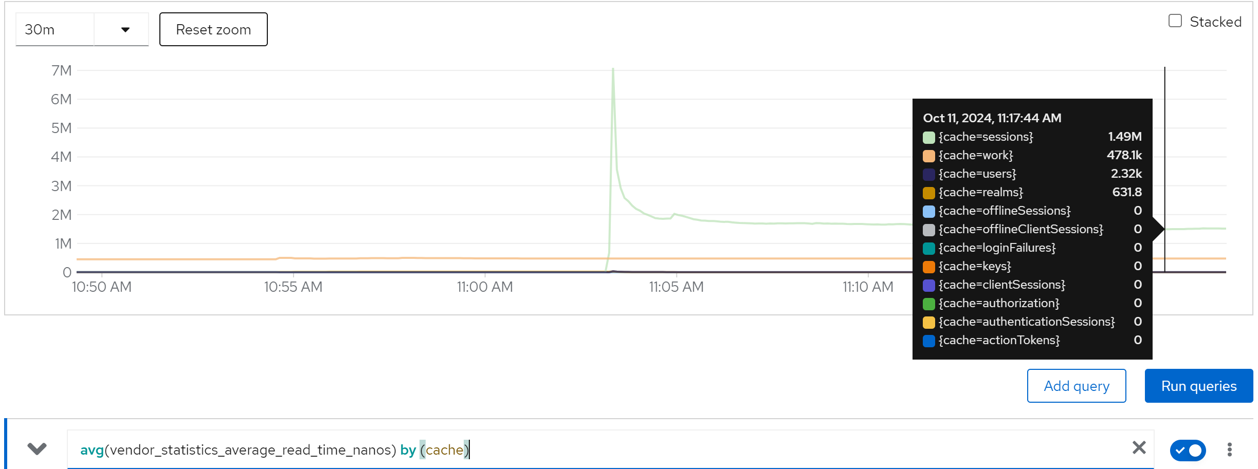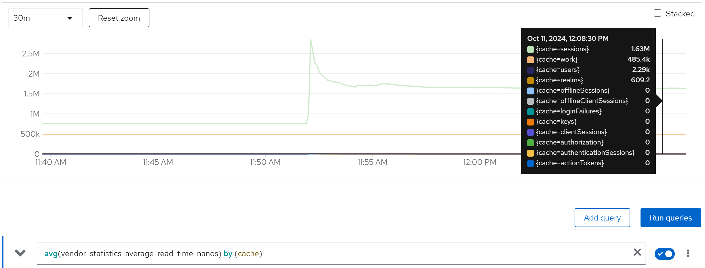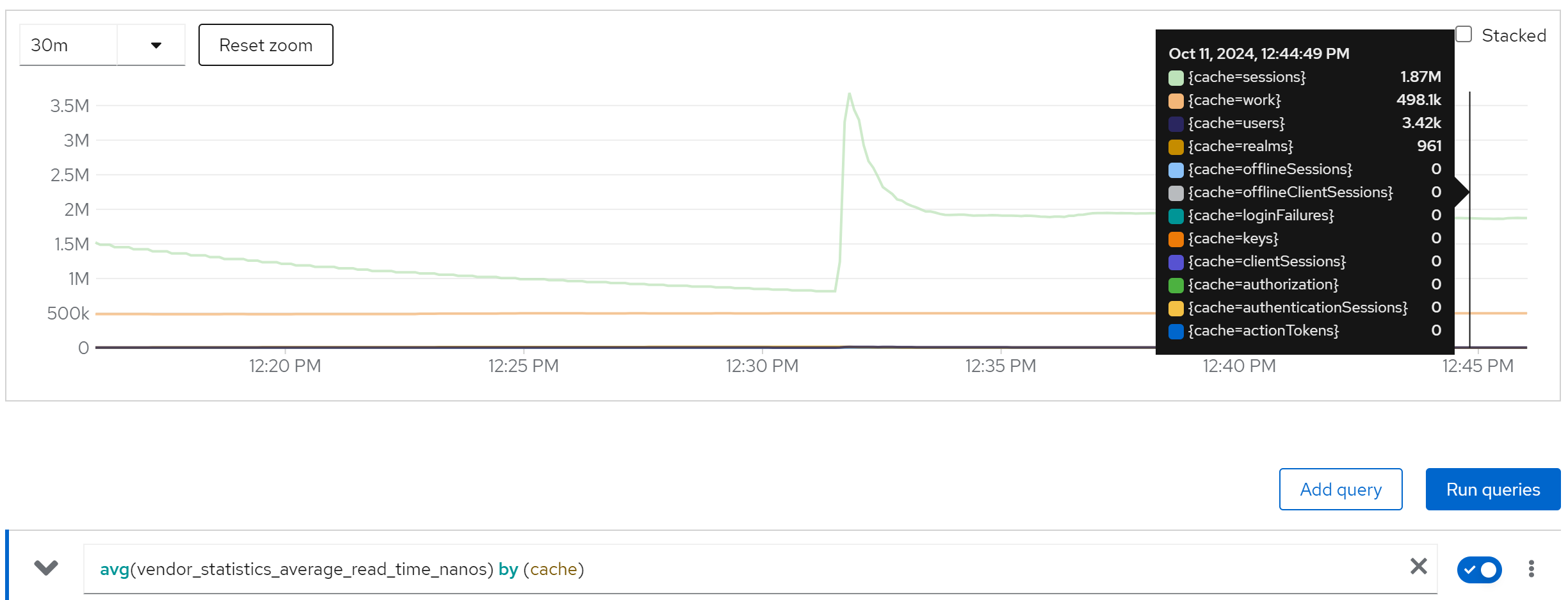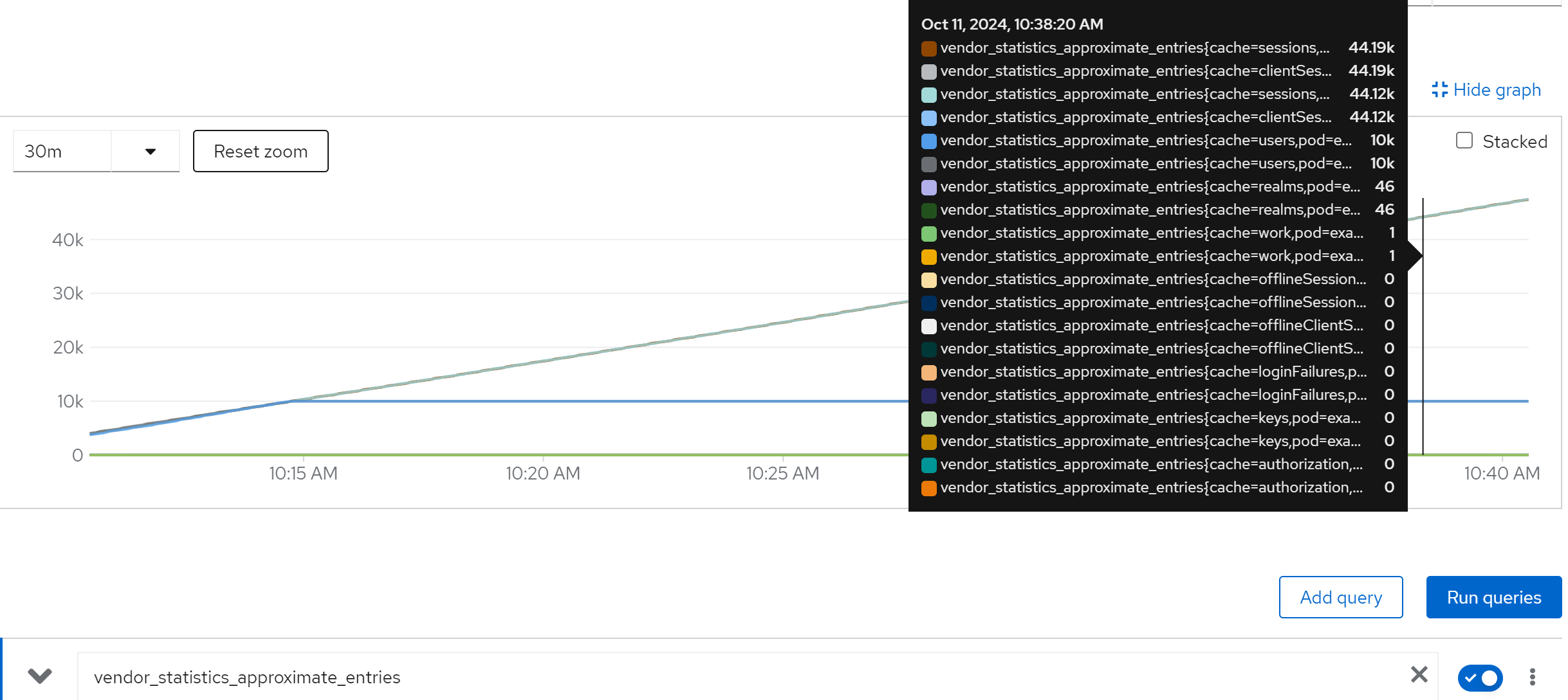 jboss_infinispan_Cache_numberOfEntries{name=“"sessions(dist_sync)"”}