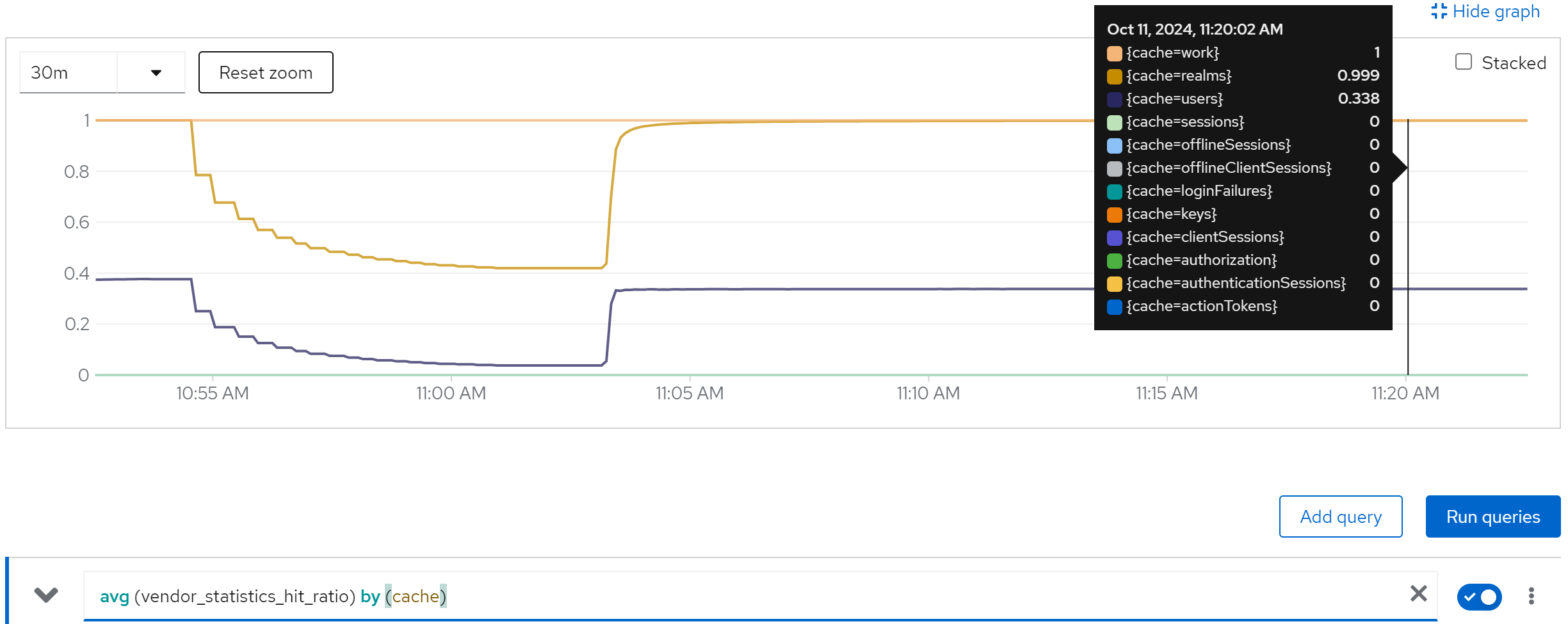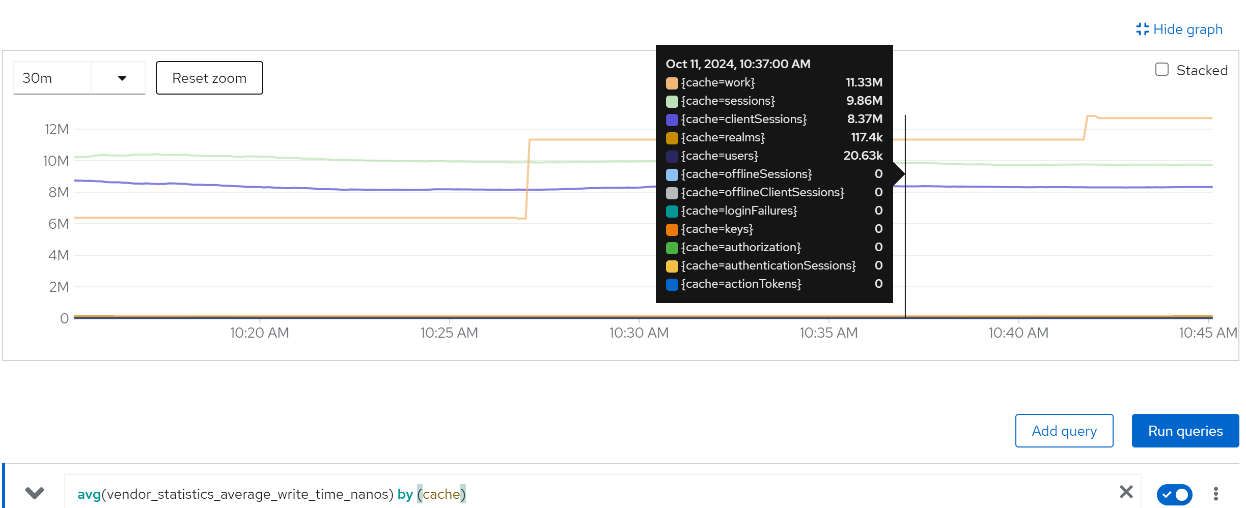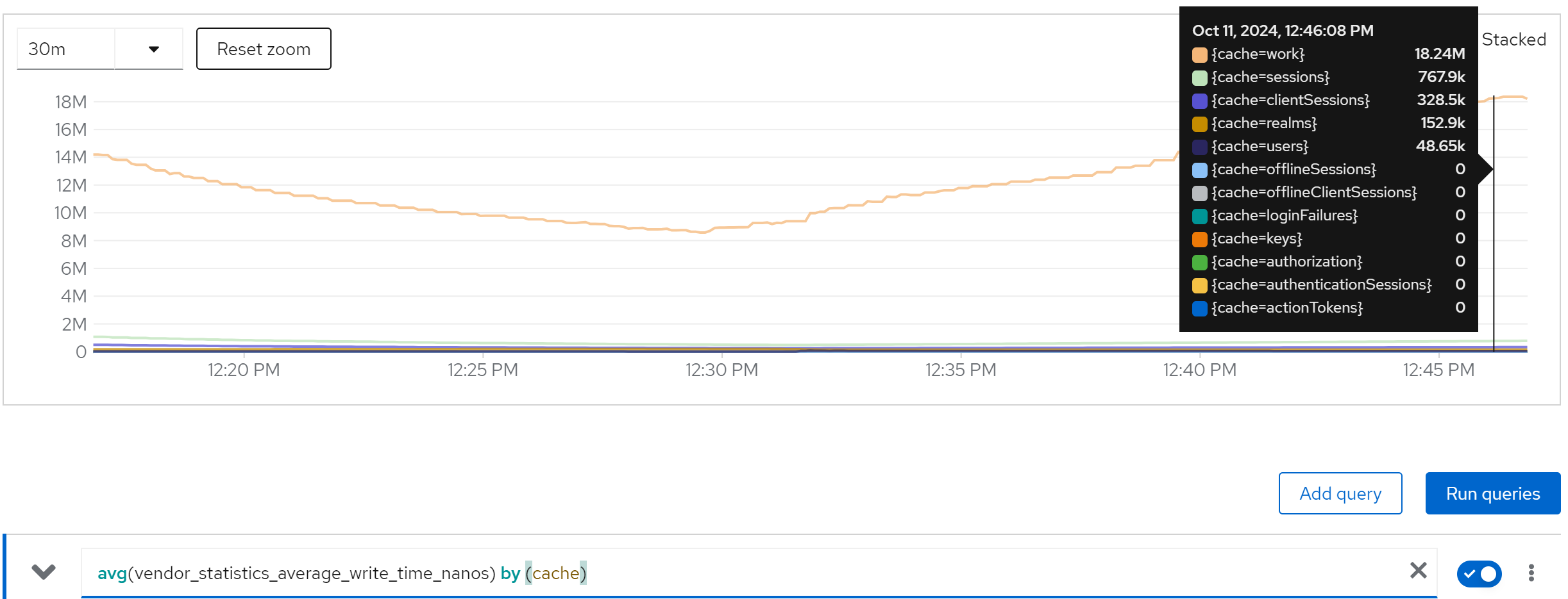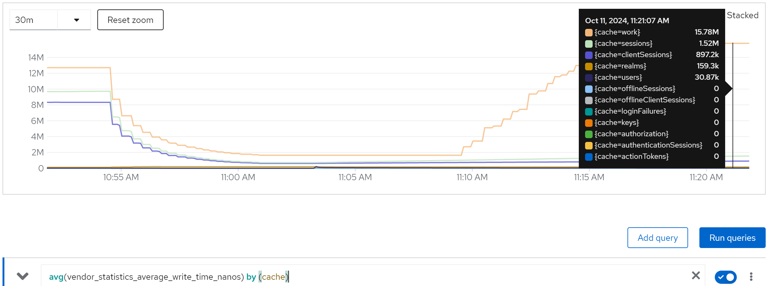 jboss_infinispan_Cache_numberOfEntries{name=“"sessions(dist_sync)"”}