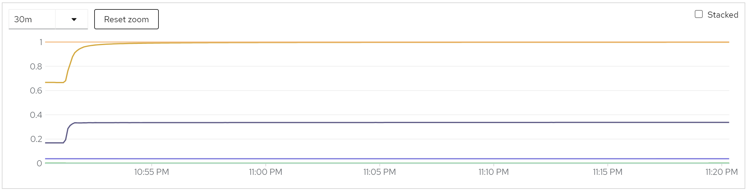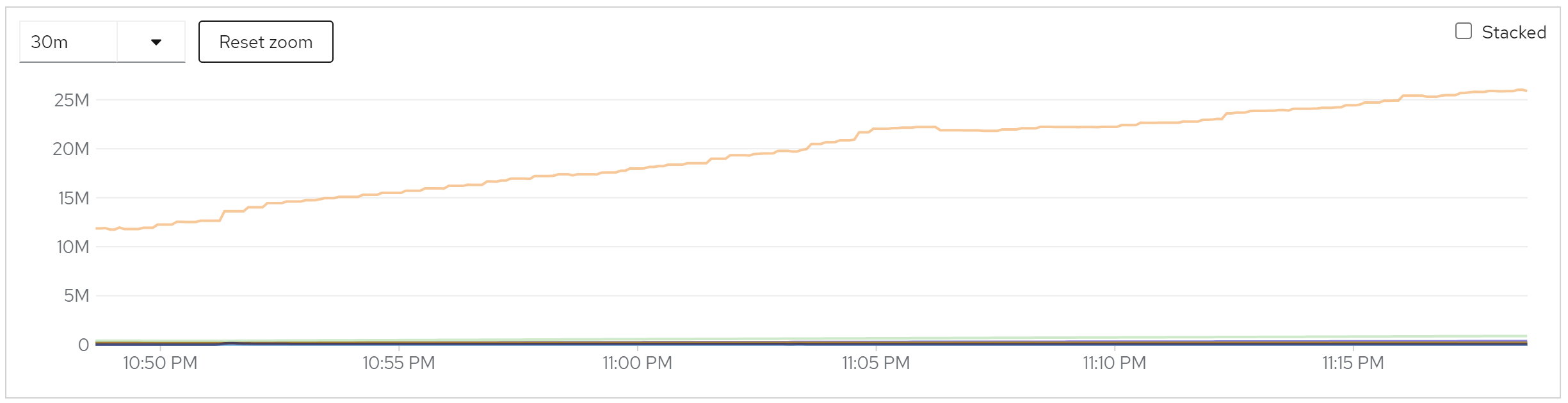 sum(jvm_memory_used_bytes{job=“rhsso-service”}) by (instance)