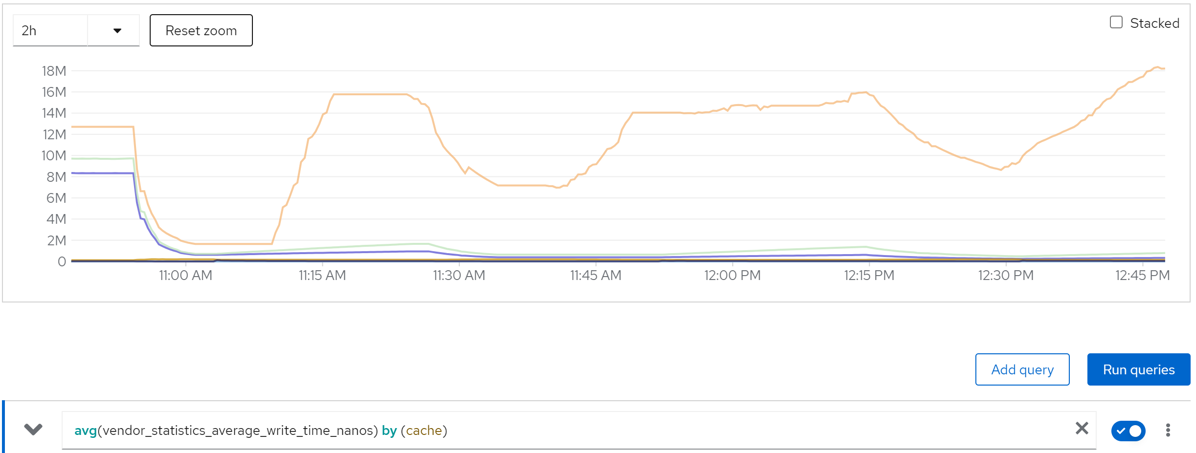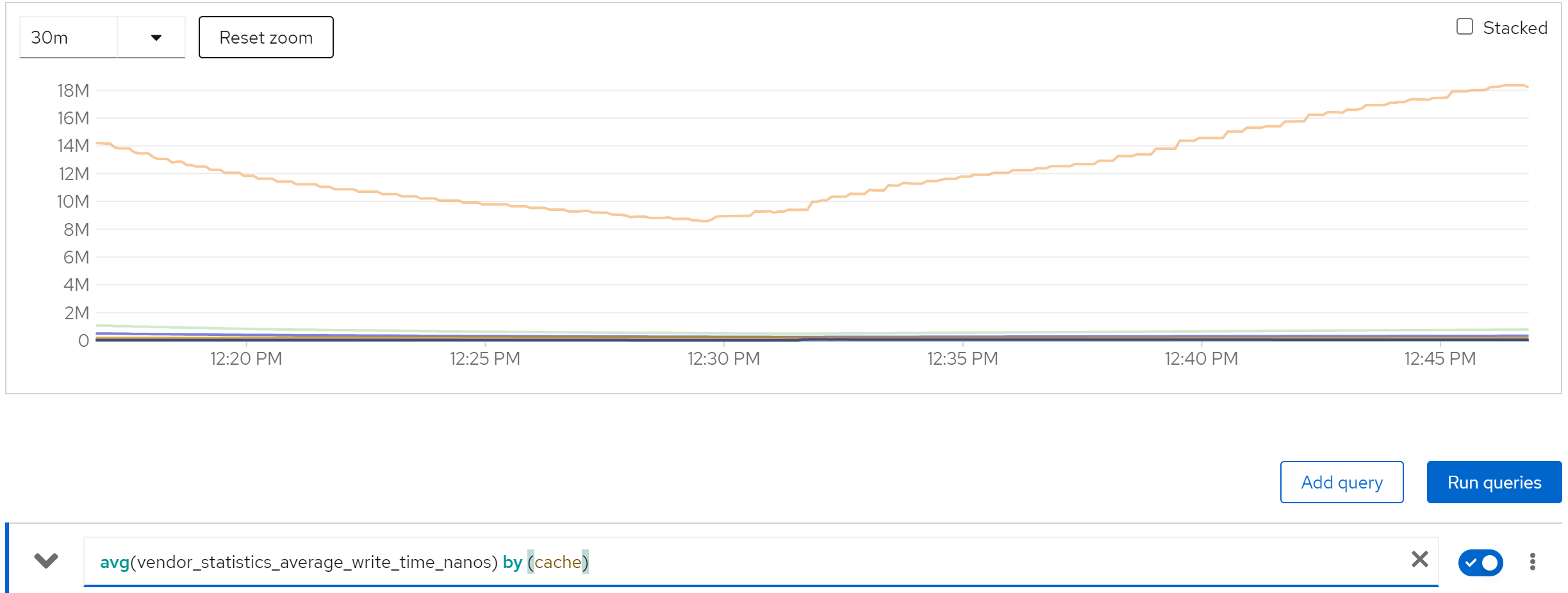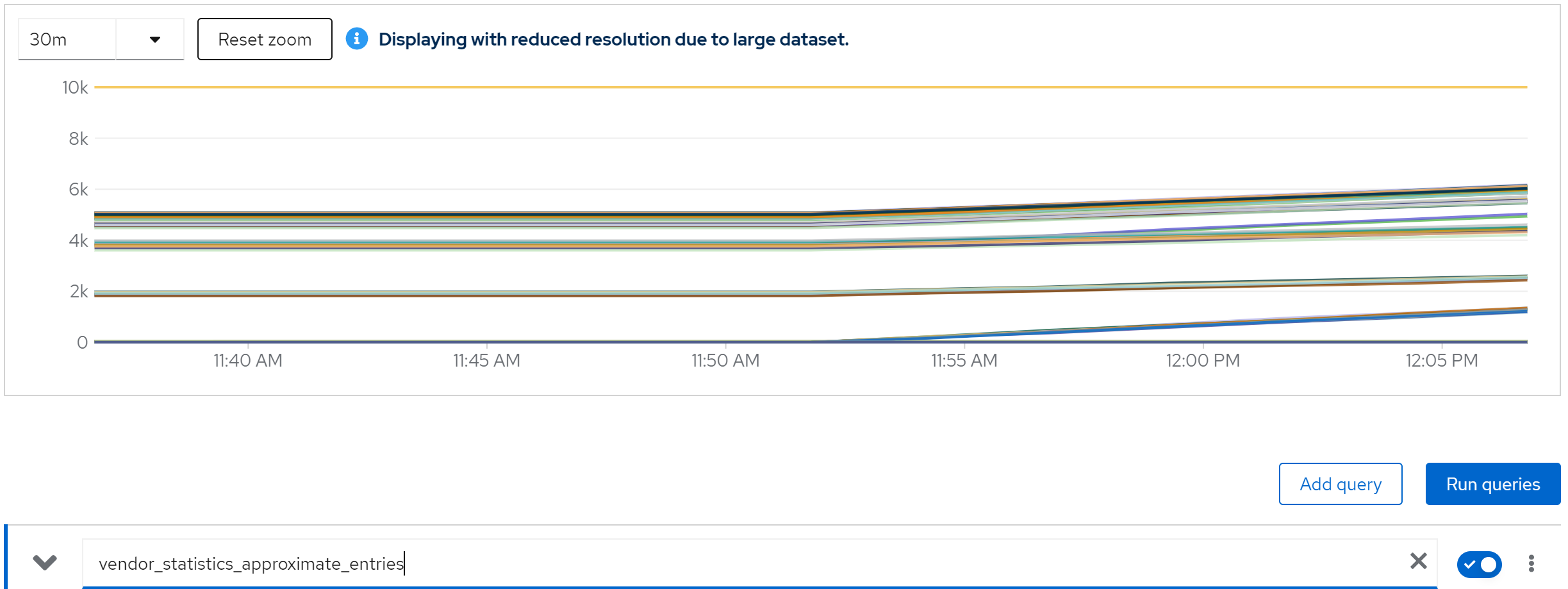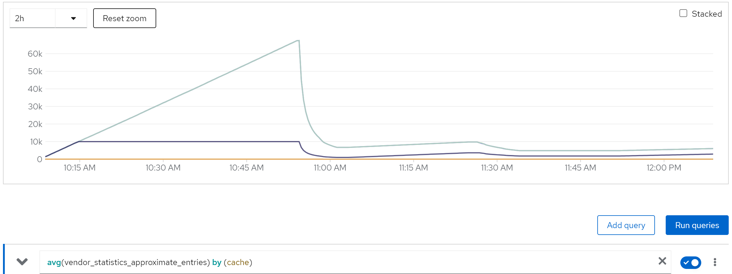 sum(jboss_infinispan_Cache_numberOfEntries) by (name)