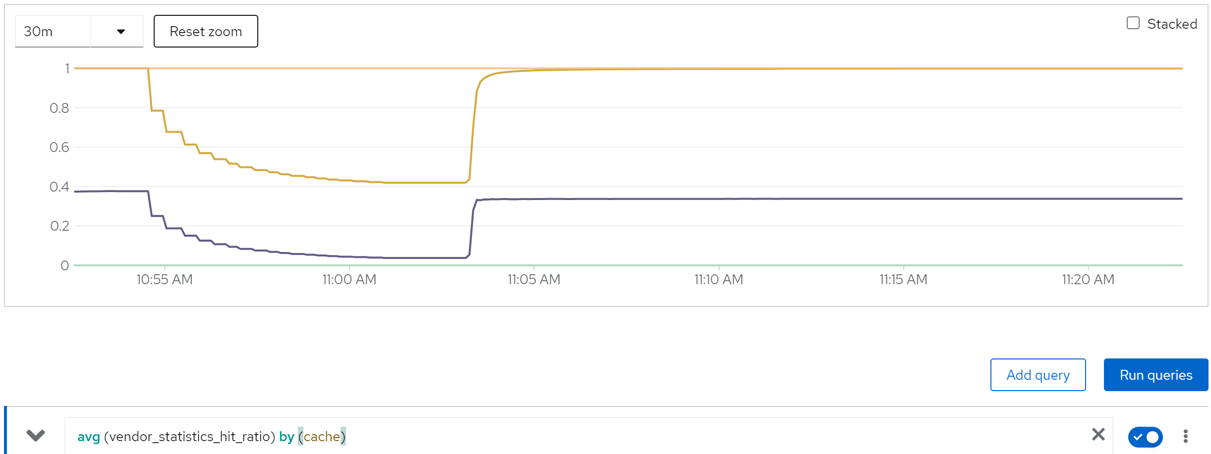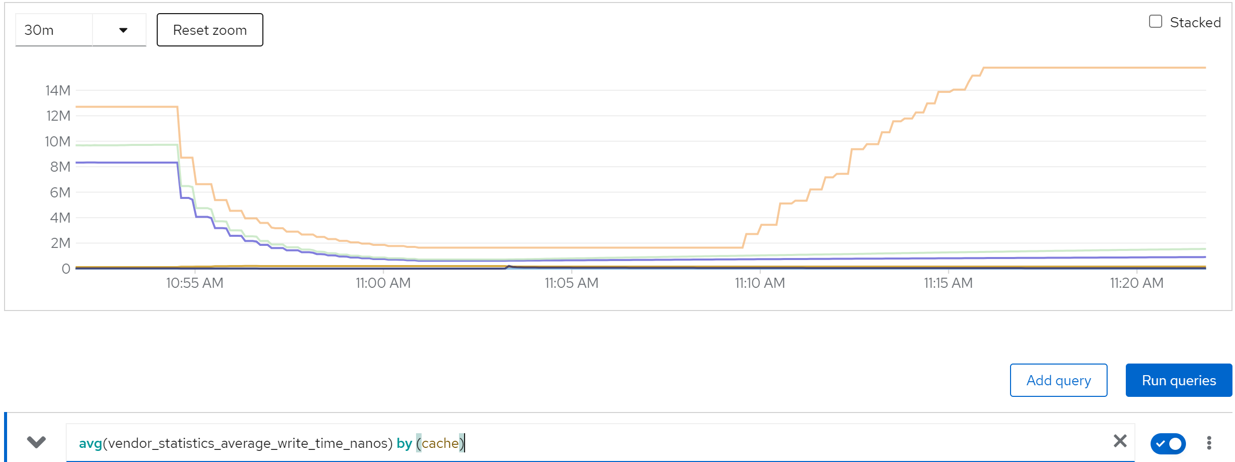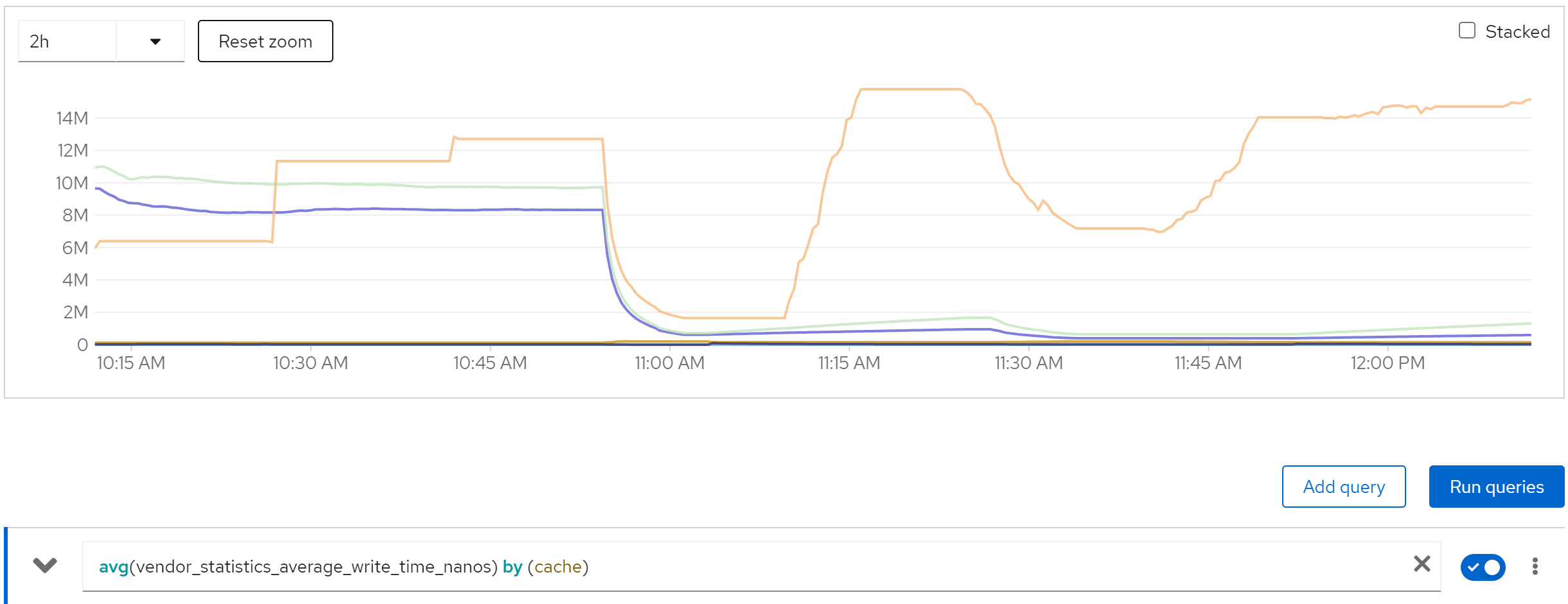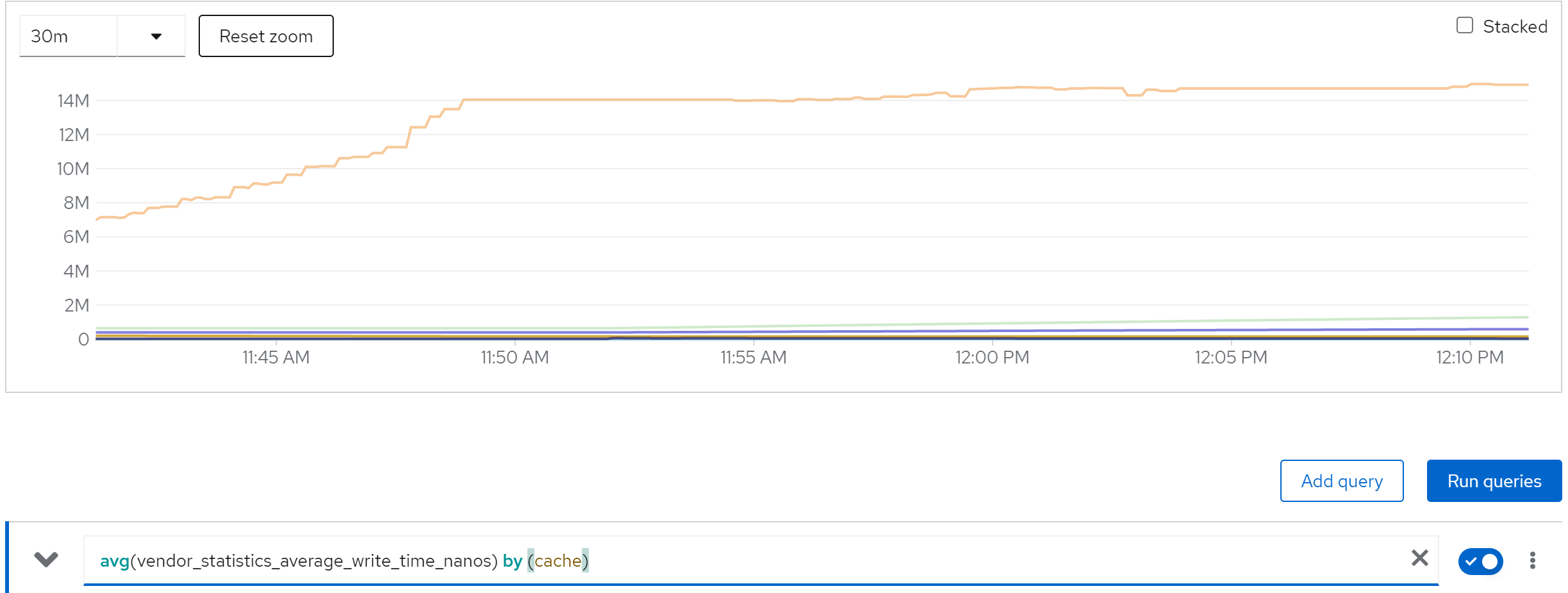 sum(jboss_infinispan_Cache_numberOfEntries) by (name)