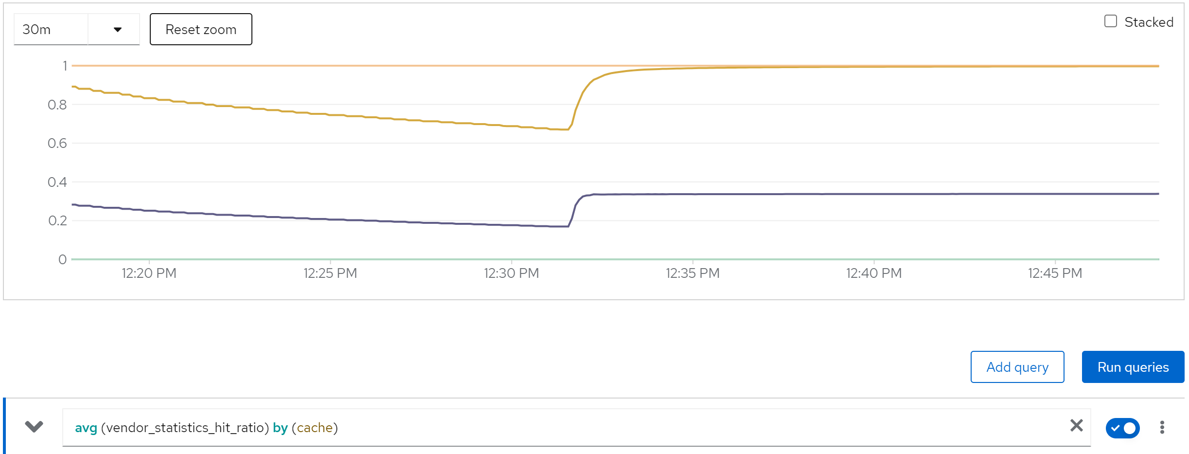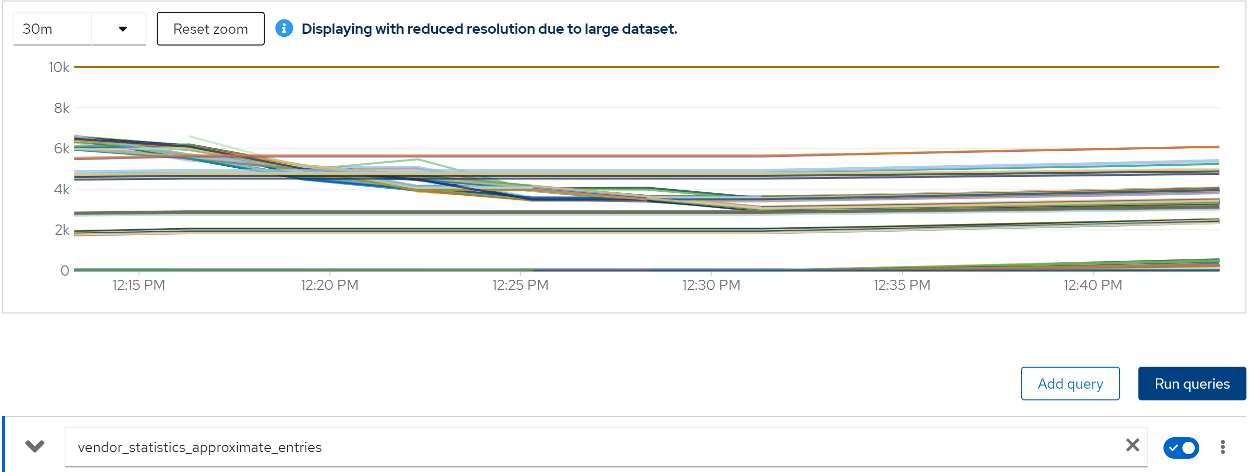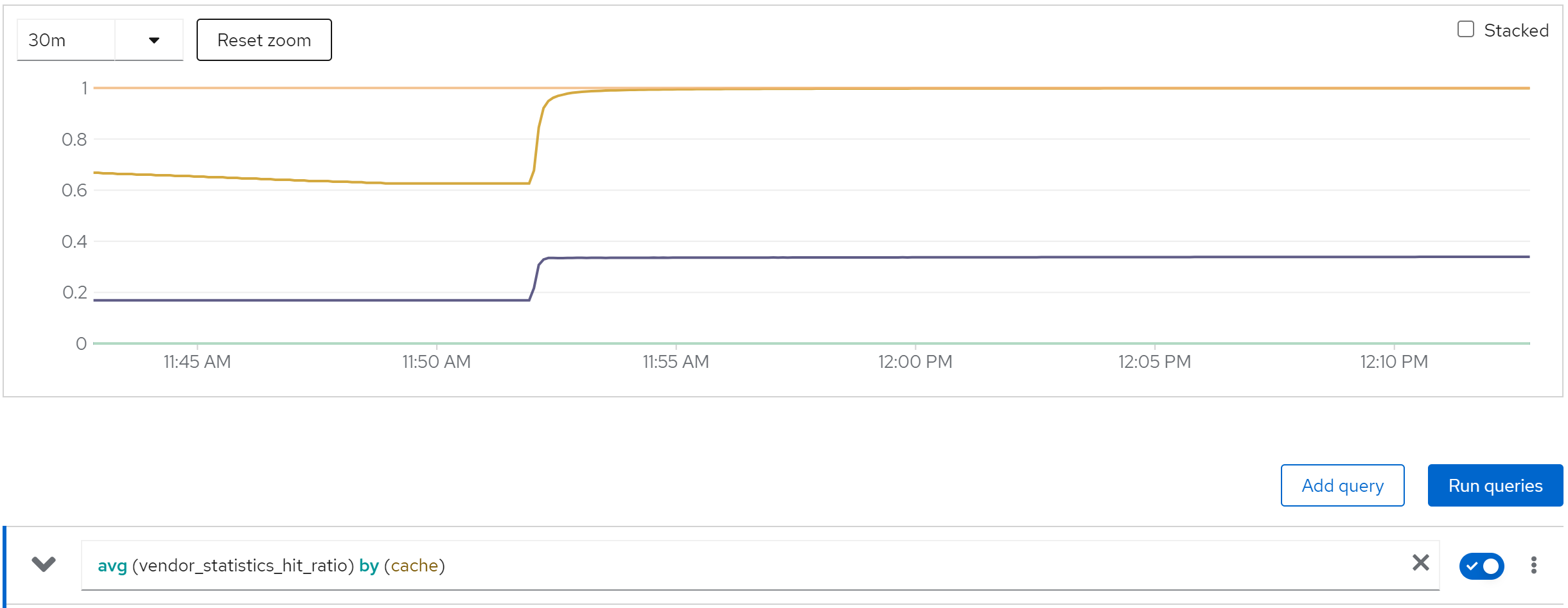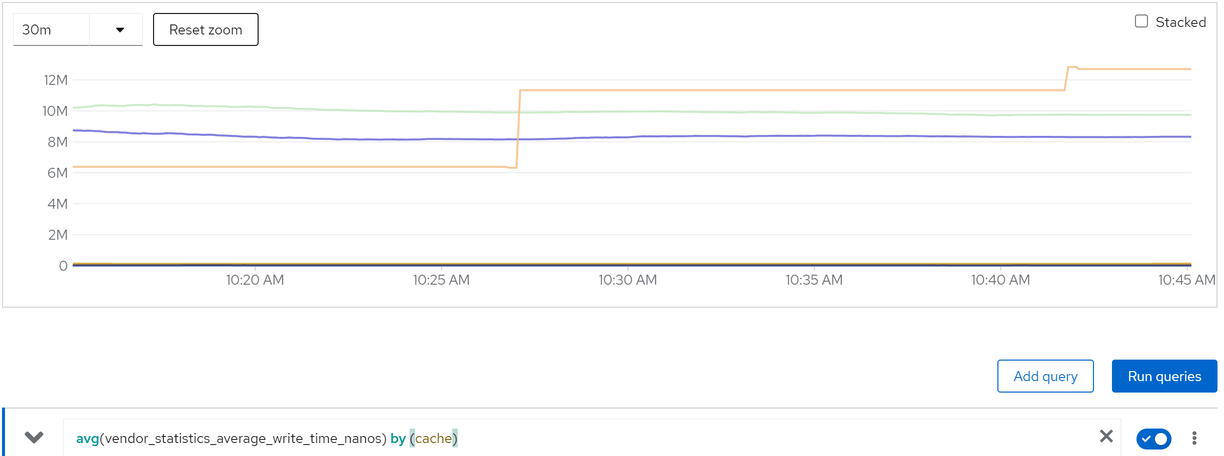 sum(jboss_infinispan_Cache_numberOfEntries) by (name)