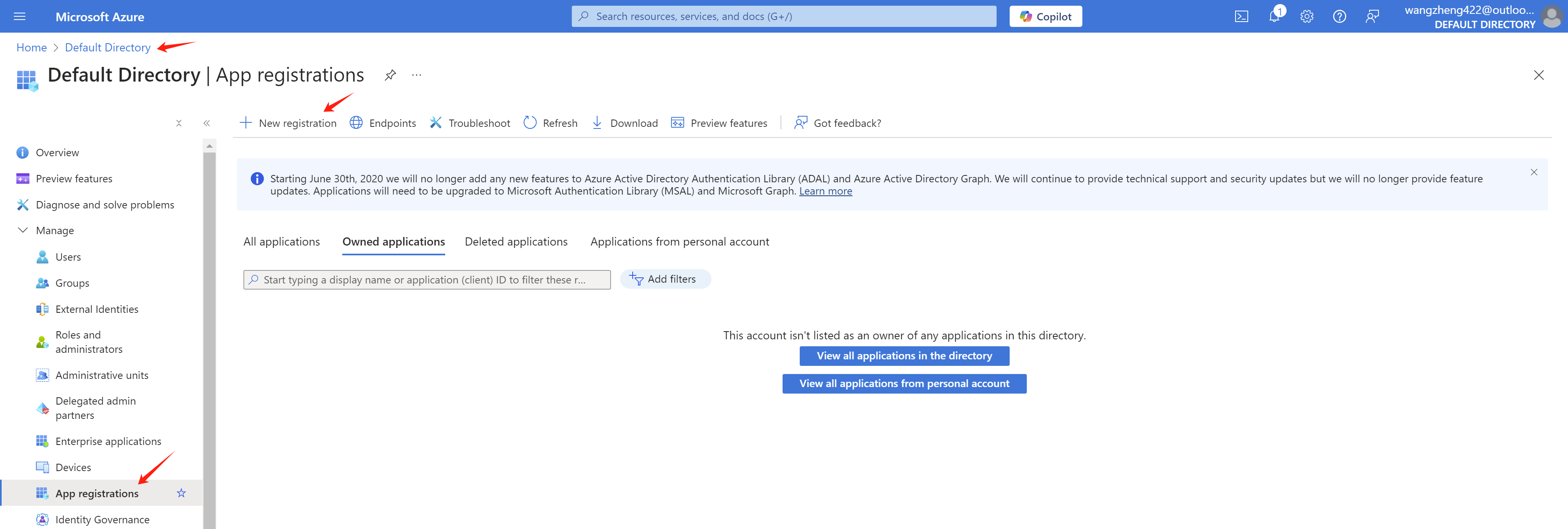 In your Azure portal, go to Azure Active Directory -> App registrations -> New registration