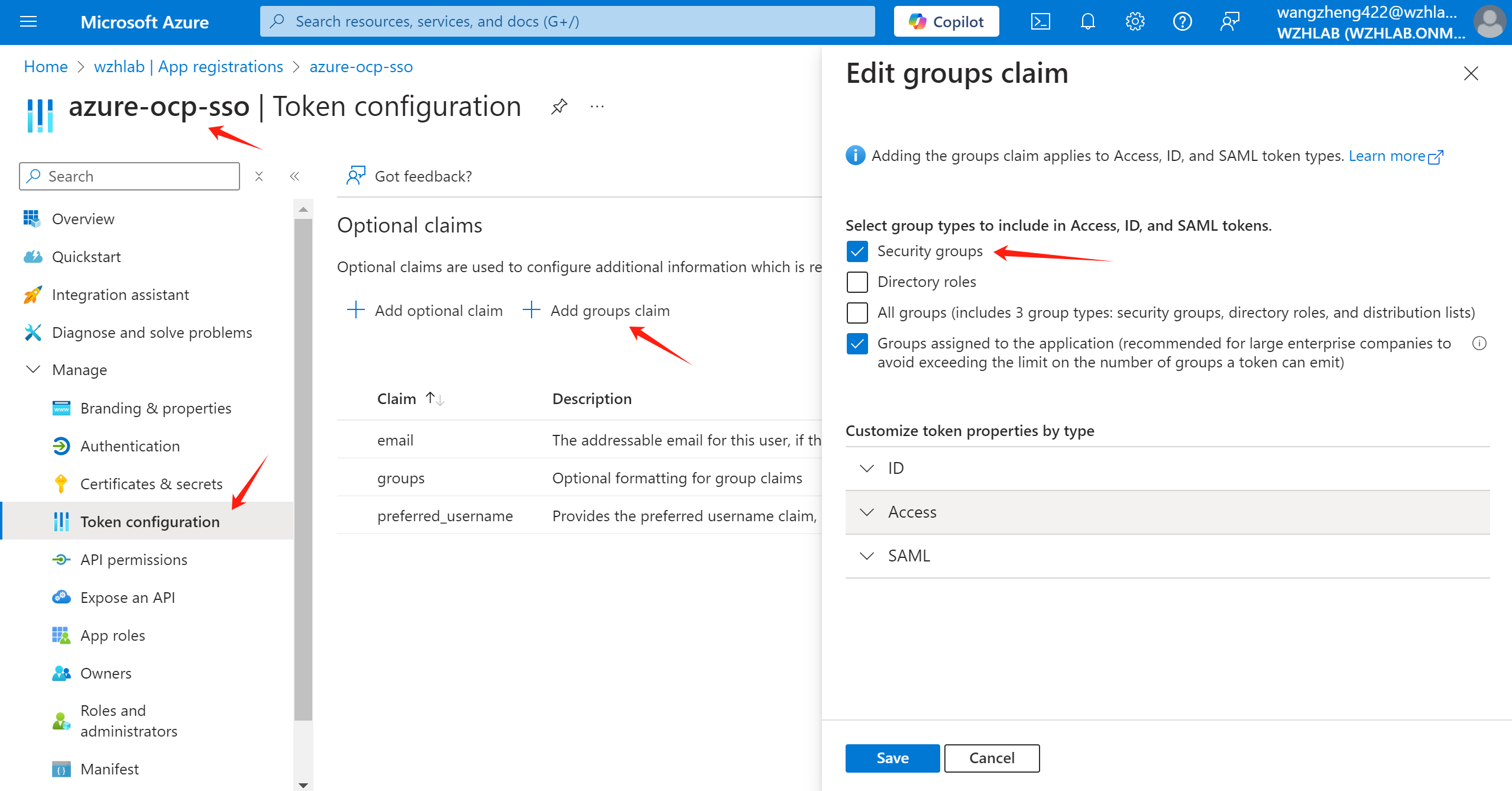 To sync the group information, we need to add groups to the app registration in Azure portal.