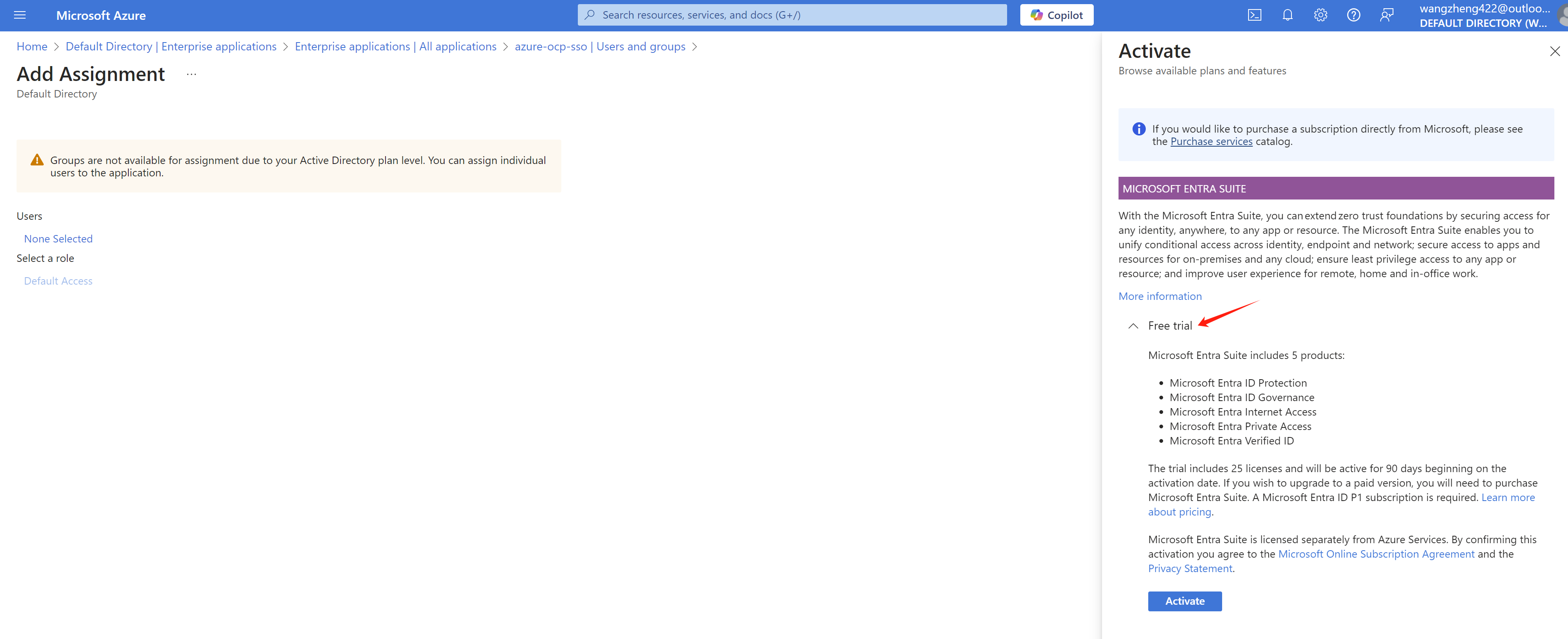 Select the groups you want to sync. Here you may need to active azure entra subscription. A free trail is available for 30 days and 25 users.