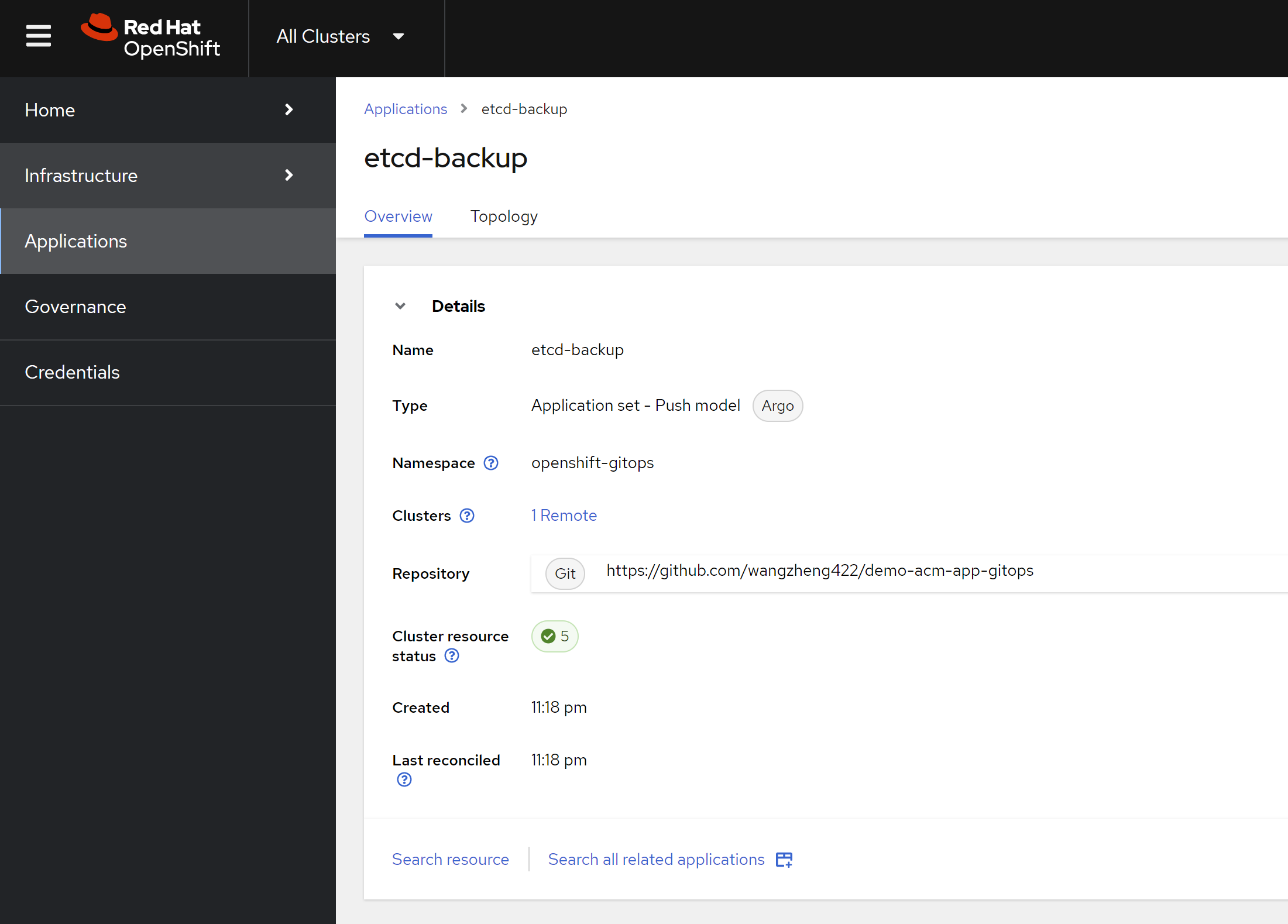 - https://github.com/wangzheng422/demo-acm-app-gitops/tree/main/gitops/etcd-backup