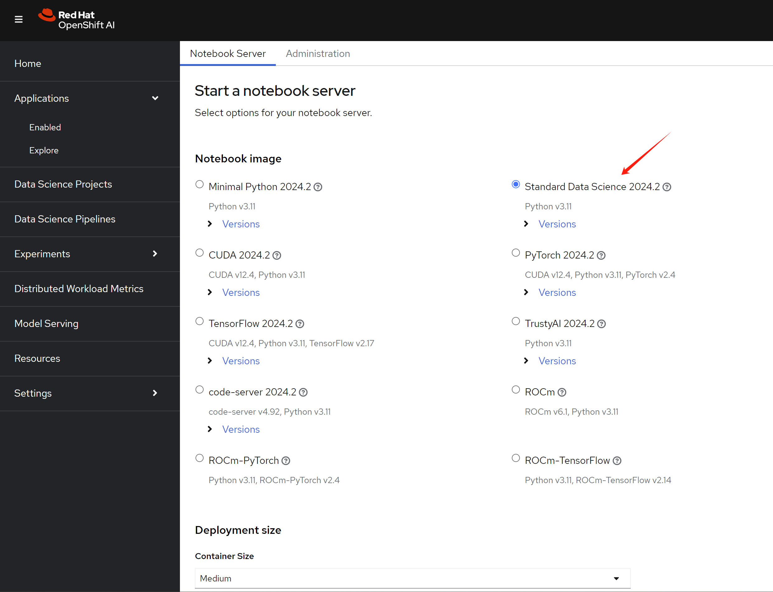 Now, we try to run with openshift ai. First, create notebook env by launch the jupyter application.