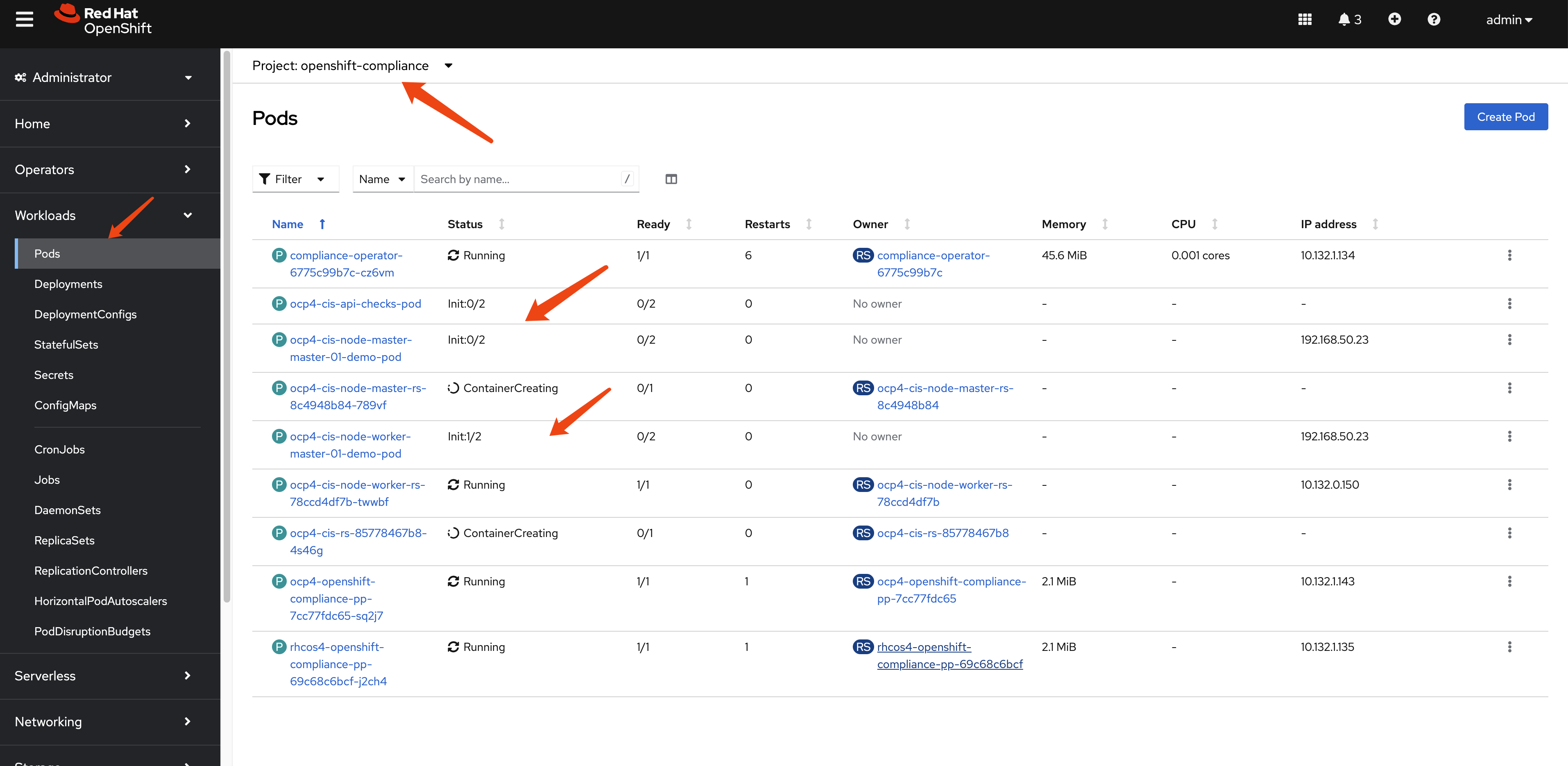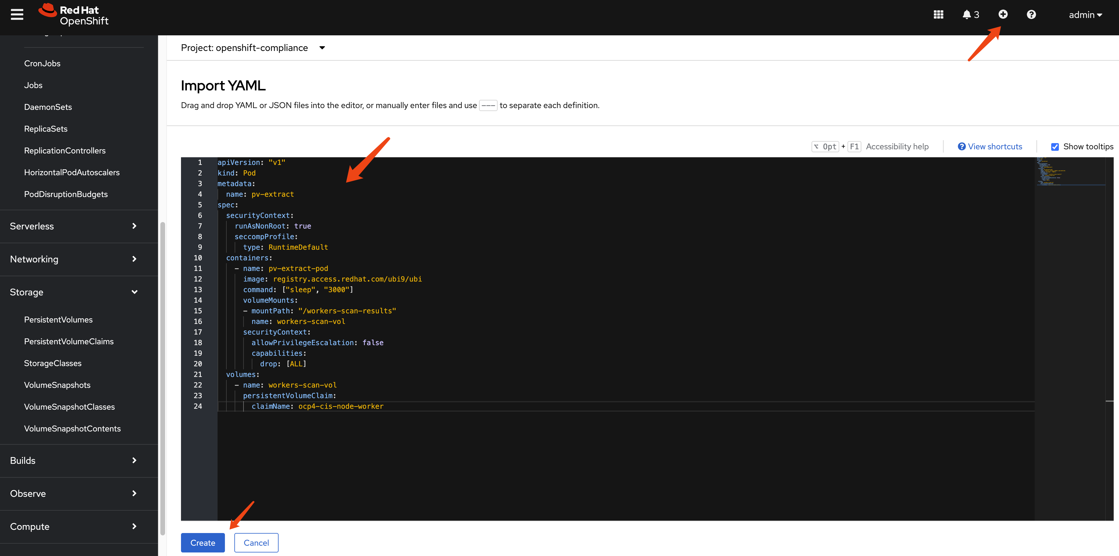 claimName: ocp4-cis-node-masterYou can create the pod easily using the webUI as follows: