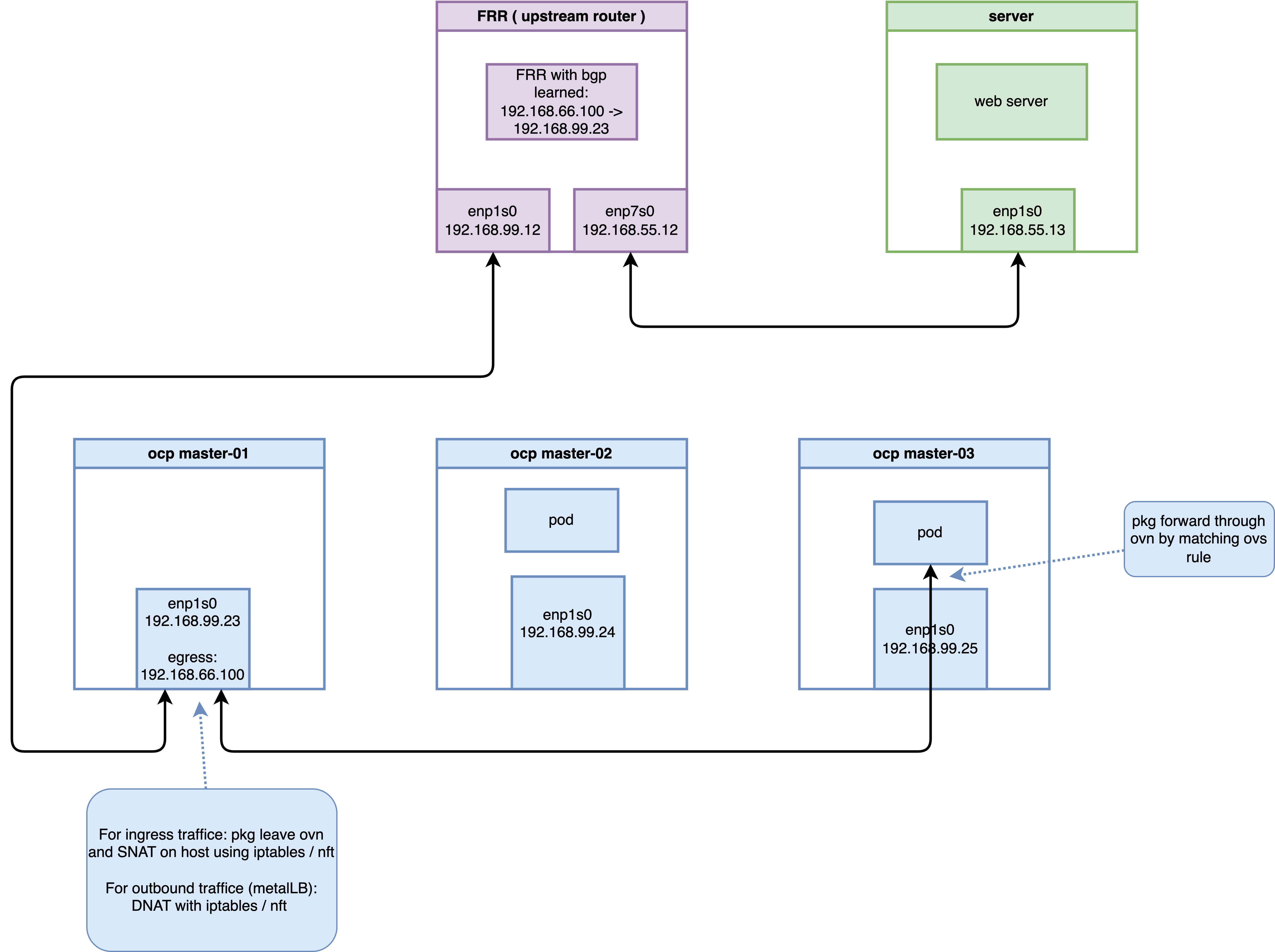 master-03) as the packet enters the OVN transit network.