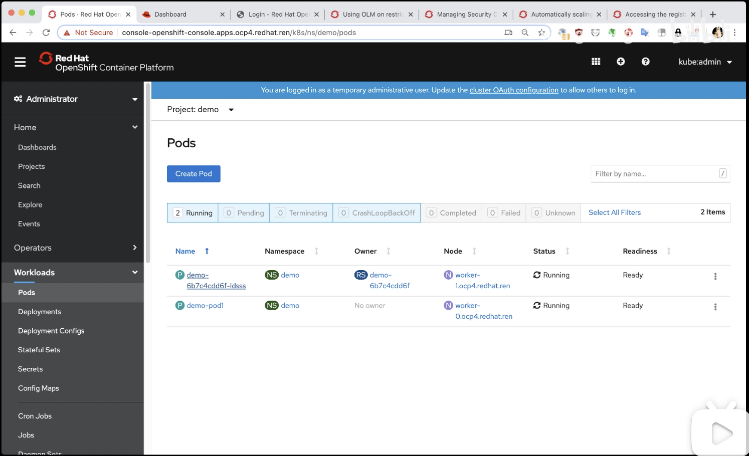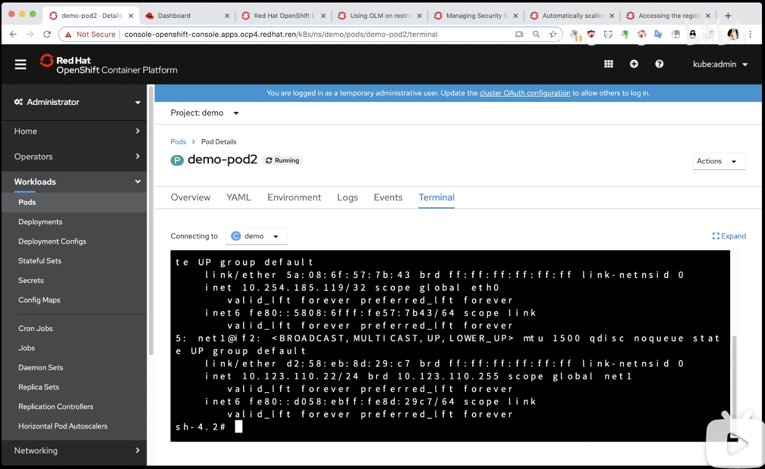 # demo-pod3 1/1 Running 0 8m52s 172.110.220.64 worker-0.ocp4.redhat.ren <none> <none>