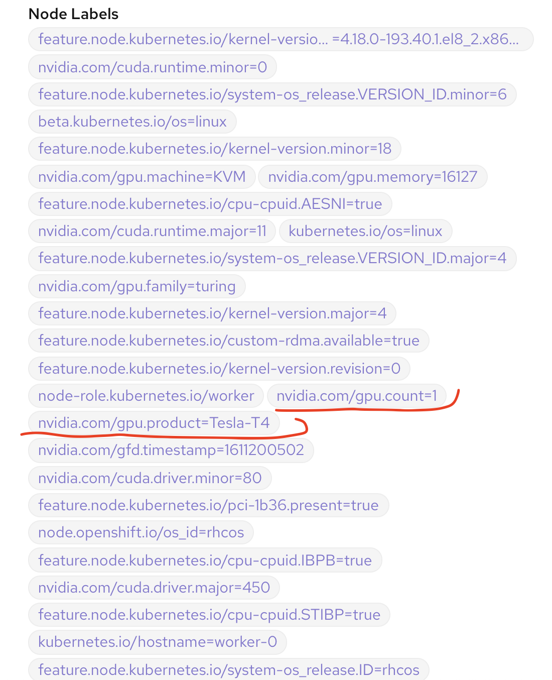 最后我们从 node label 上就能看见识别到的 gpu 了。