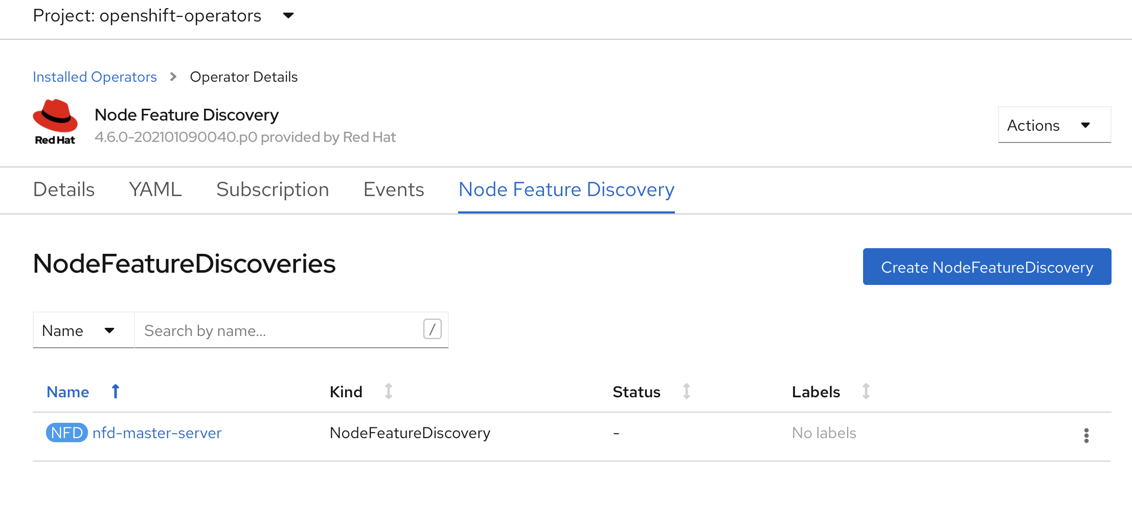 然后给nfd做一个配置,直接点击创建就可以,什么都不用改,注意namespace是openshift-operator