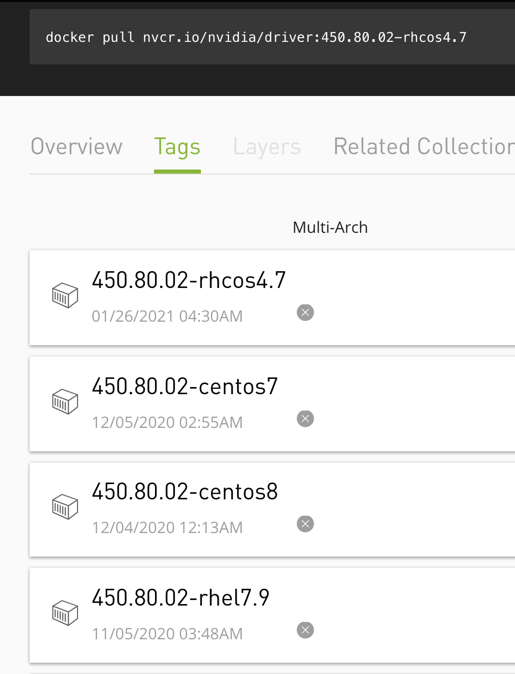 官方driver镜像下载: https://ngc.nvidia.com/catalog/containers/nvidia:driver/tags