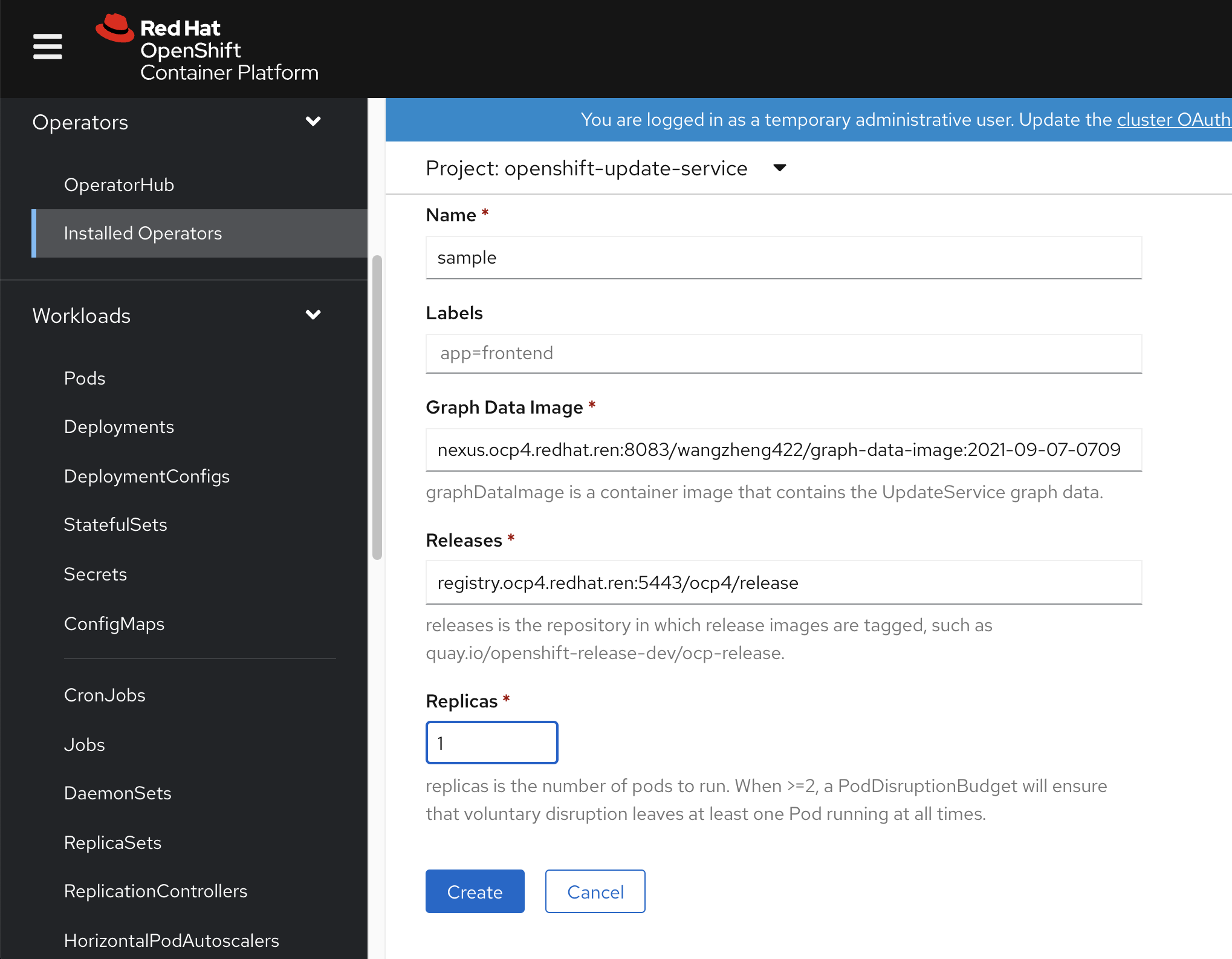 oc patch clusterversion version --type='json' -p='[{"op": "replace", "path": "/spec/upstream", "value": "http://update-wzh-openshift-update-service.apps.ocp4.redhat.ren/api/upgrades_info/v1/graph"}]'