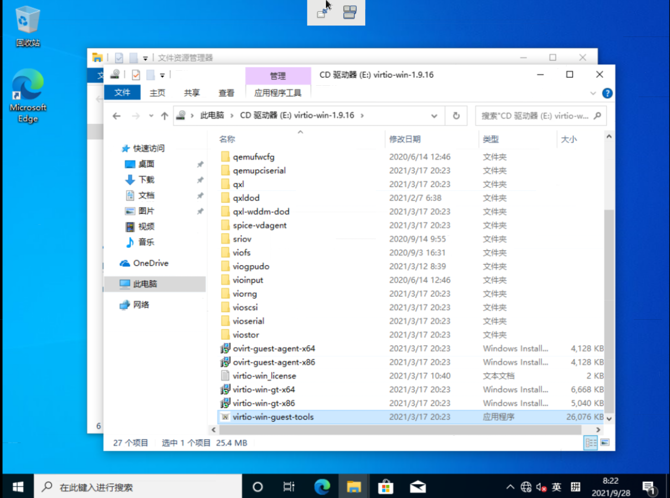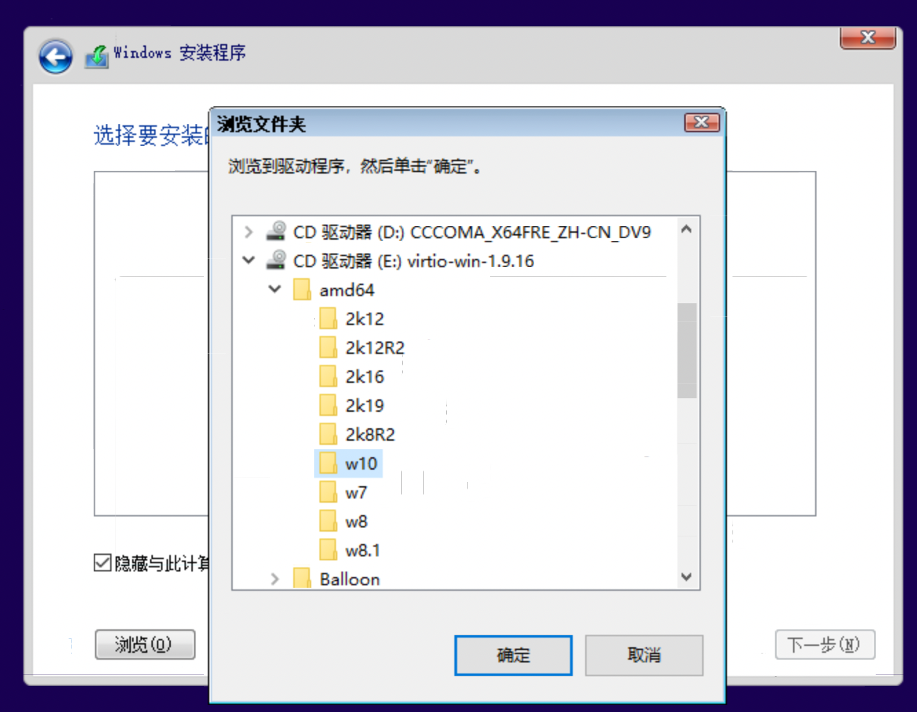 --disk ${KVM_DIRECTORY}/virtio-win.iso,device=cdromwin10的话,必须选择专业版。