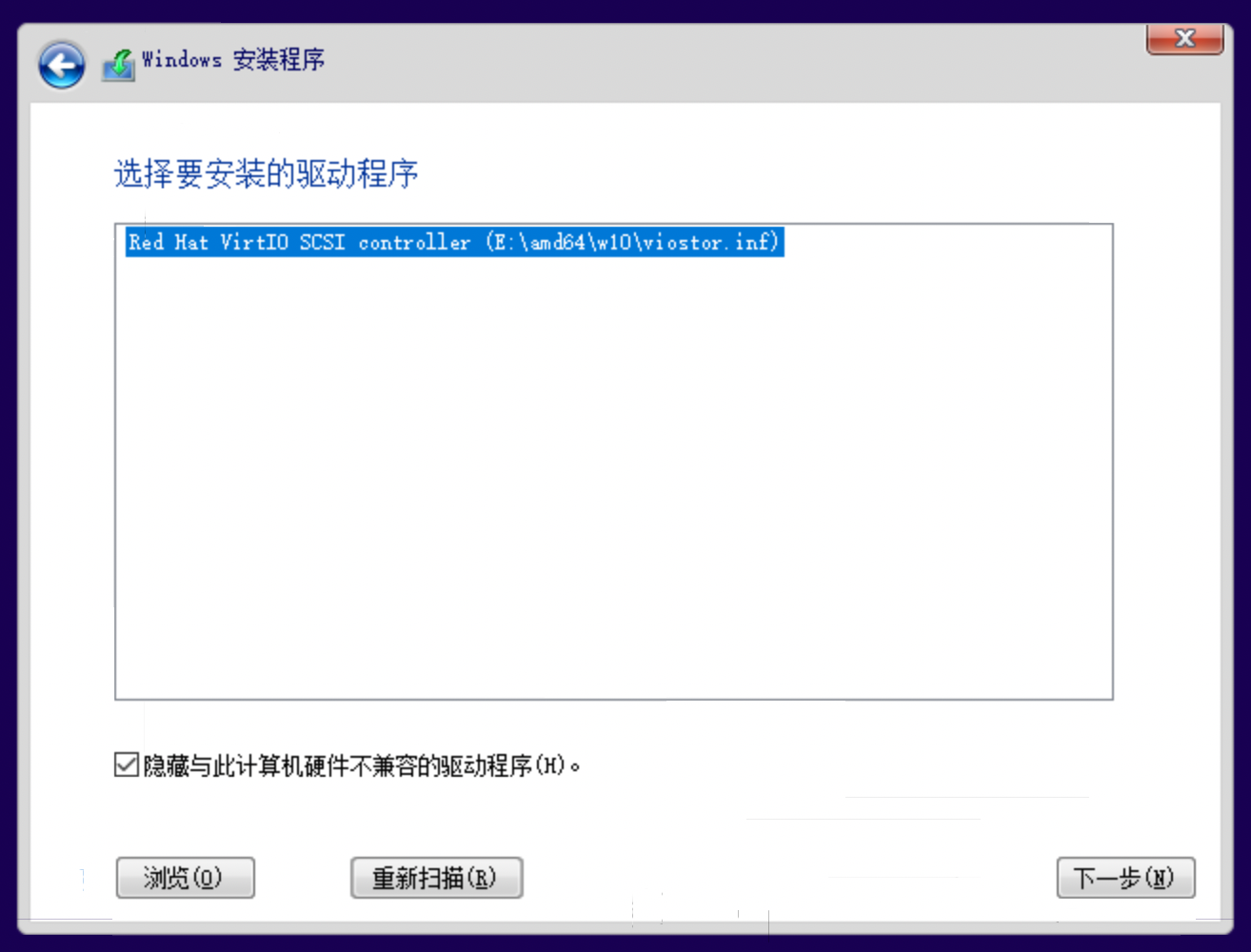 # 先要准备一下 virtio 的驱动,因为 win10 里面没有, 安装的时候找不到硬盘。