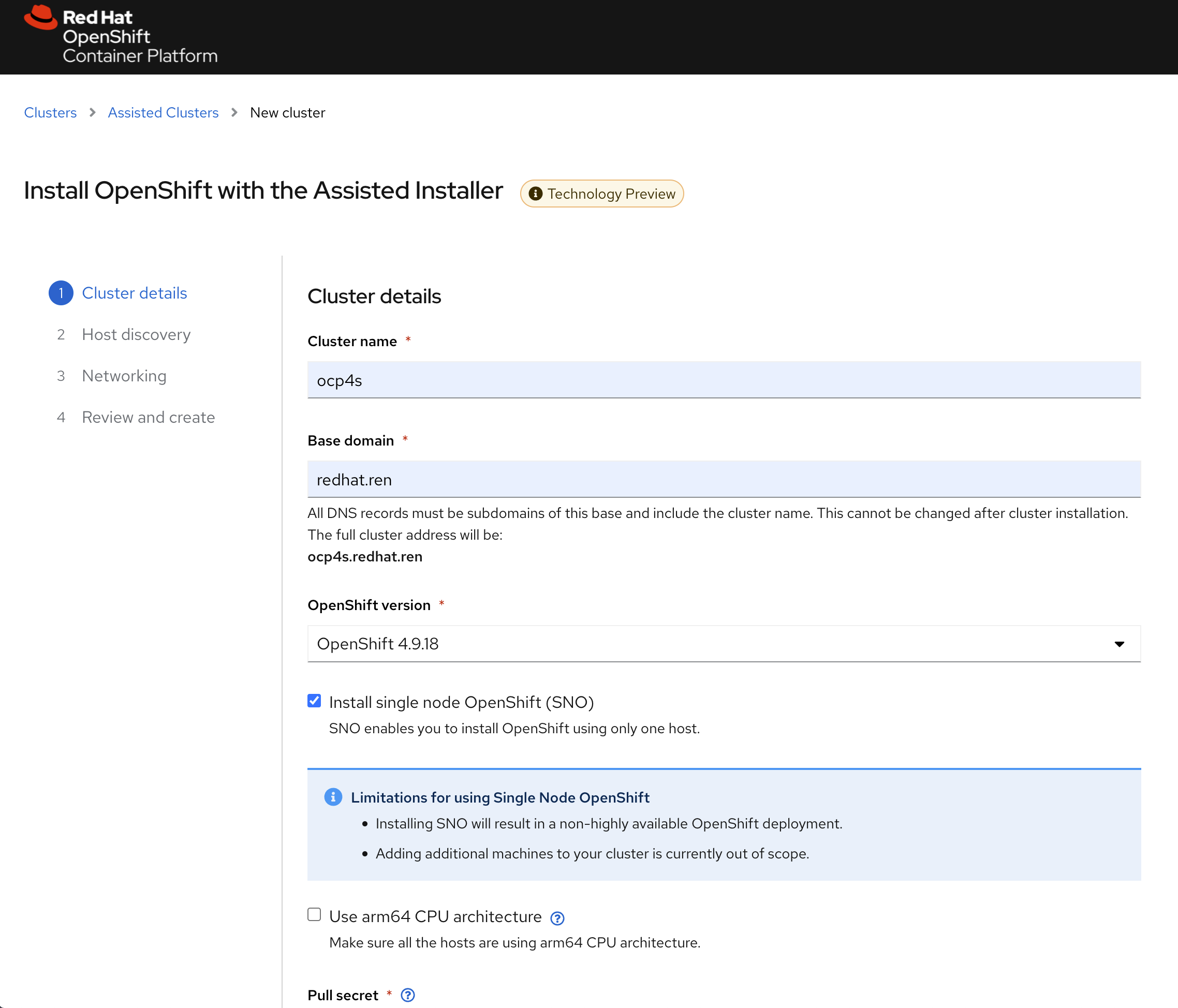 assisted install service有2个版本,一个是cloud.redhat.com上面那个,同时还有一个本地版本,两个版本功能一样,因为我们需要有定制需求,所以我们选择本地版本。