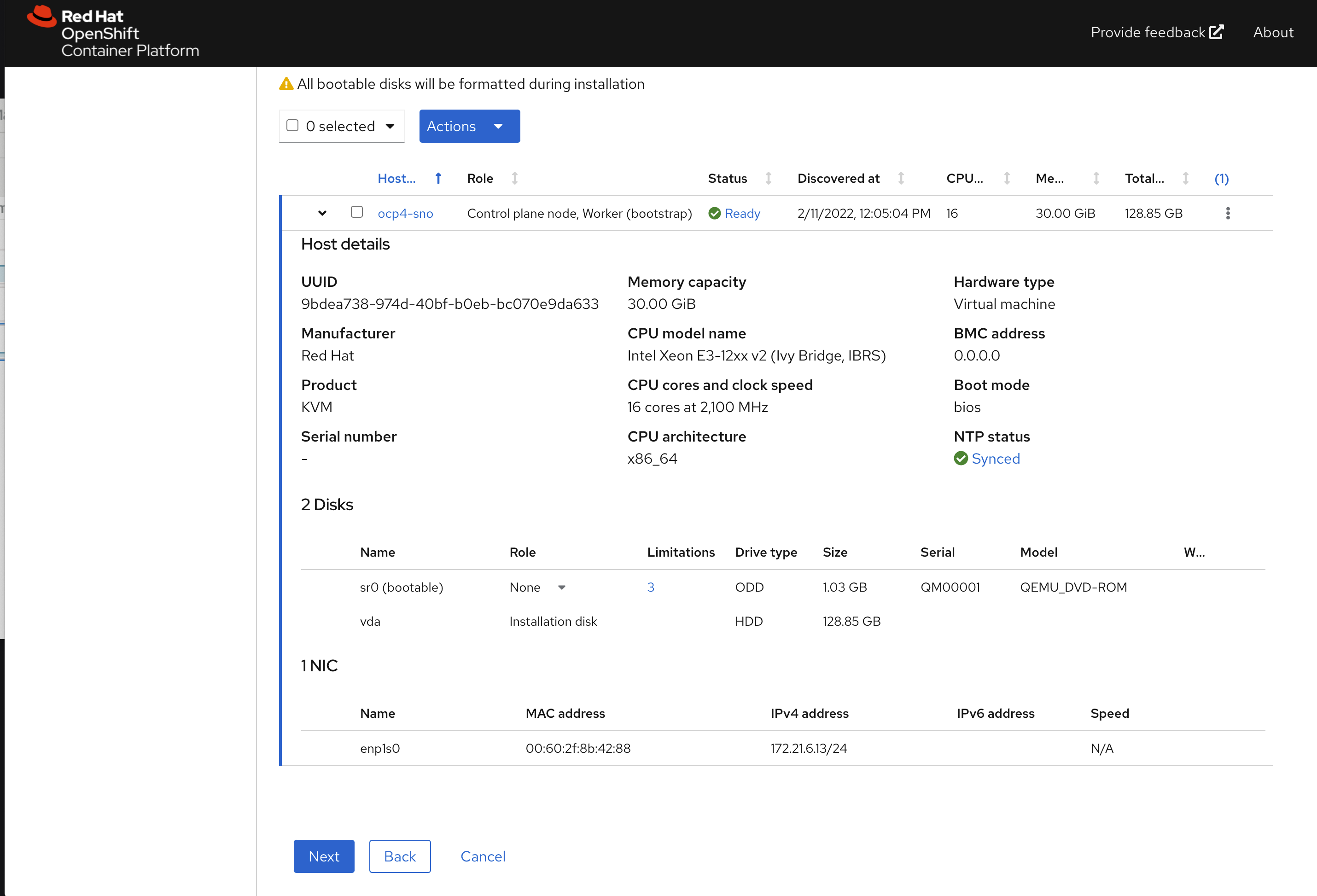 我们回到kvm宿主机,启动kvm,开始安装single node openshift