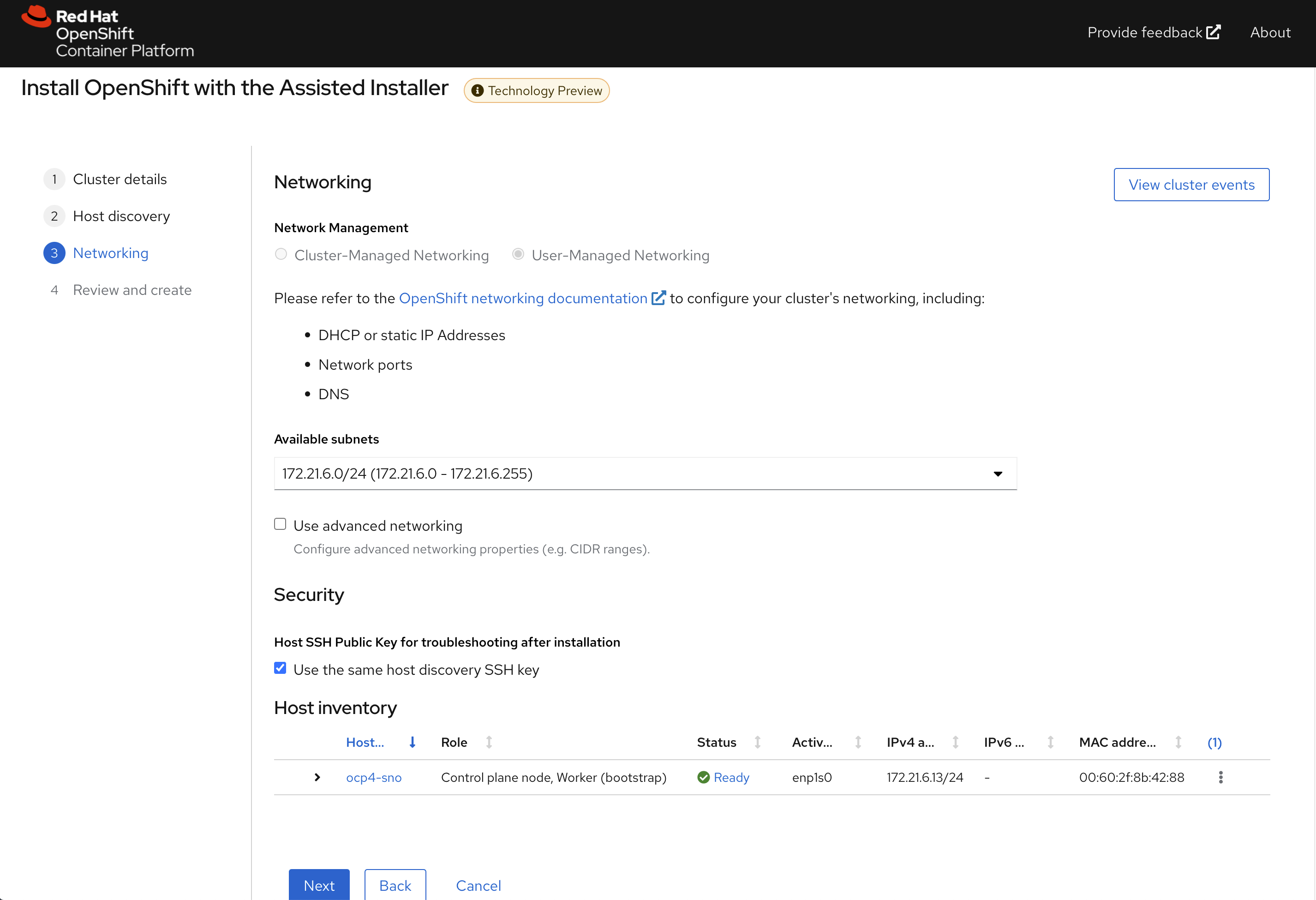 openshift 4.9 single node, assisted install mode, without dhcp, connected