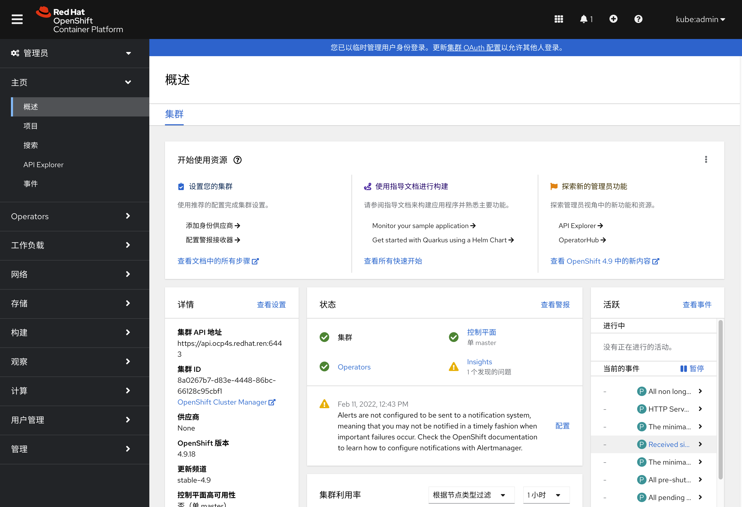 用户名密码是: kubeadmin / 3QS3M-HA3Px-376HD-bvfif
