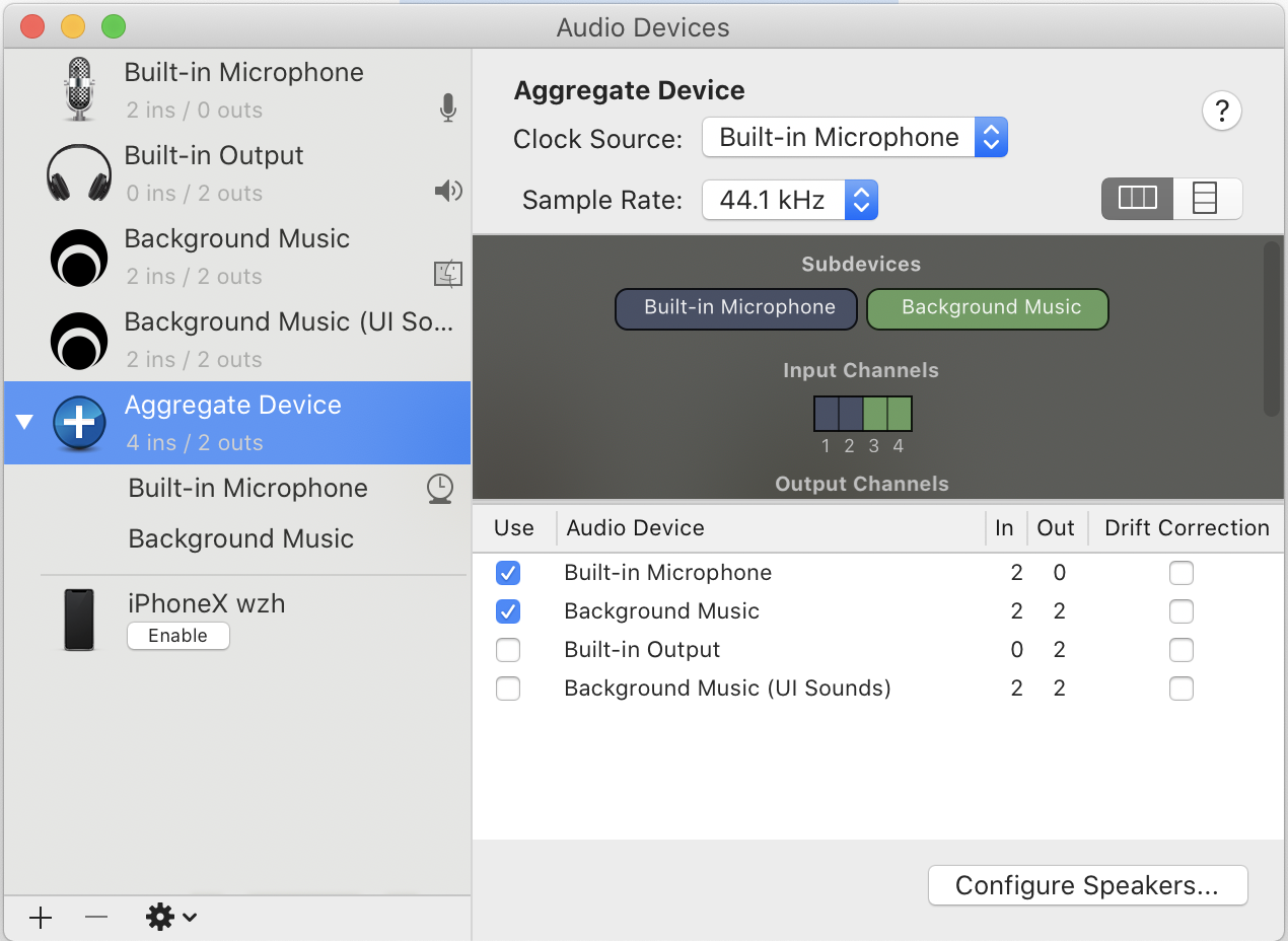 最后,我们开启录屏软件,输入设备选择aggregate device就可以了。